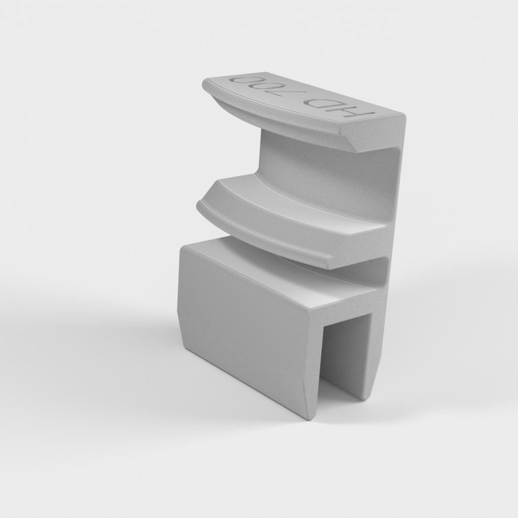 Denna hållare är speciellt utformad för Sennheiser HD700-hörlurarna och erbjuder en praktisk förvaringslösning. Den kan enkelt monteras på en 18 mm hylla , vilket ger en stabil och säker plats för dina hörlurar och den medföljande kabeln. Genom att låta dina Sennheiser HD700-hörlurar hänga upp förhindrar du röran på skrivbordet och skyddar dem från onödigt slitage. Denna design hjälper till att hålla ditt lyssningsutrymme organiserat och dina hörlurar lättillgängliga.
