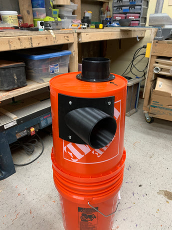 Denna sidomonterade cyklondammavskiljare är utformad för att förvandla en vanlig 23-liters hink till ett effektivt dammuppsamlingssystem. Den fästs på sidan av hinken och möjliggör anslutning av en 10 cm slang, vilket ger en kompakt och funktionell lösning för dem med begränsat verkstadsutrymme.
