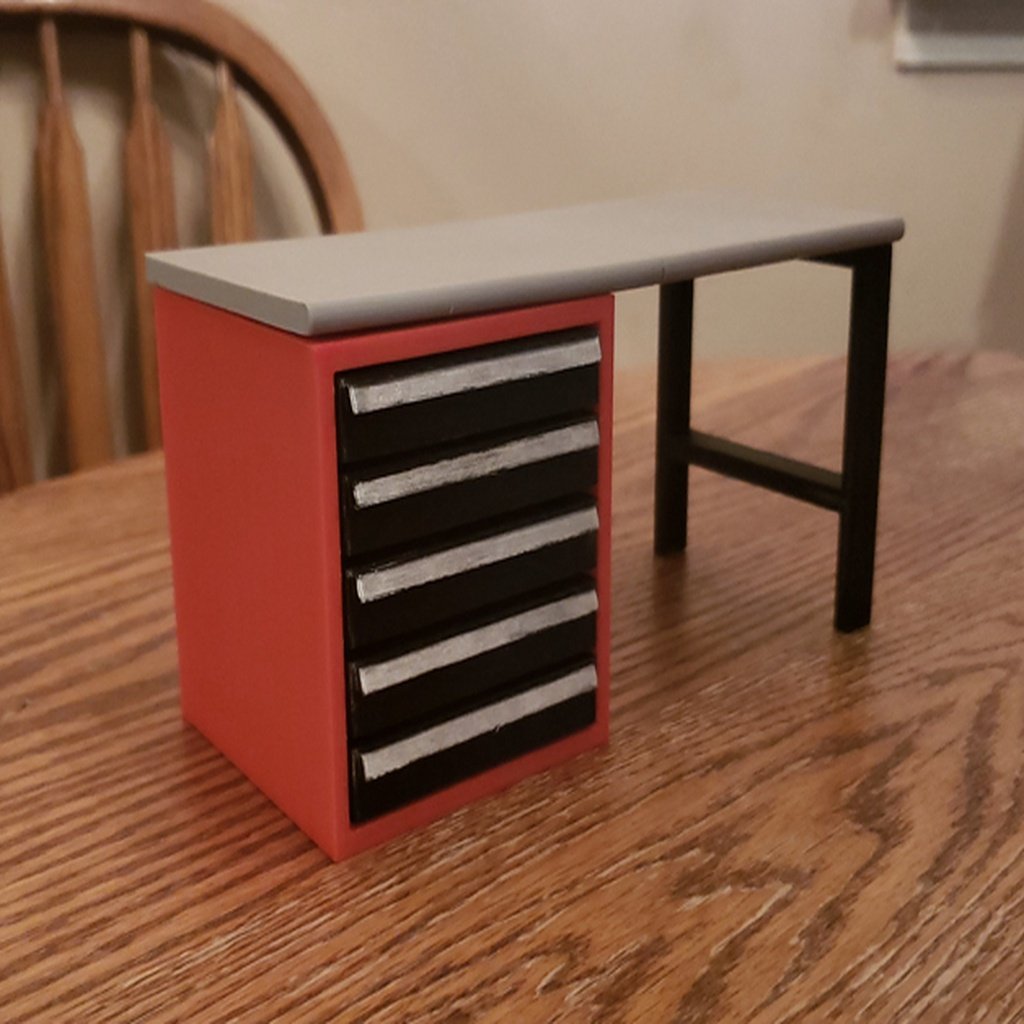 Detta skalenliga verkstadsbord med verktygsskåp är ett detaljerat tillskott till alla miniatyrgarage eller verkstäder. Designat i skala 1:10 passar det perfekt in i RC-fordon och andra modellbyggmiljöer, vilket skapar en autentisk miljö för dina hobbyprojekt. Verktygsskåpet är fullt funktionellt med lådor som gör att du kan organisera dina smådelar och miniatyrverktyg effektivt. Detta ger ett enkelt arbetsflöde och gör det enkelt att organisera, så att din modelluppsättning klarar en "konkurrentsökning" vad gäller funktionalitet och detaljnivå.