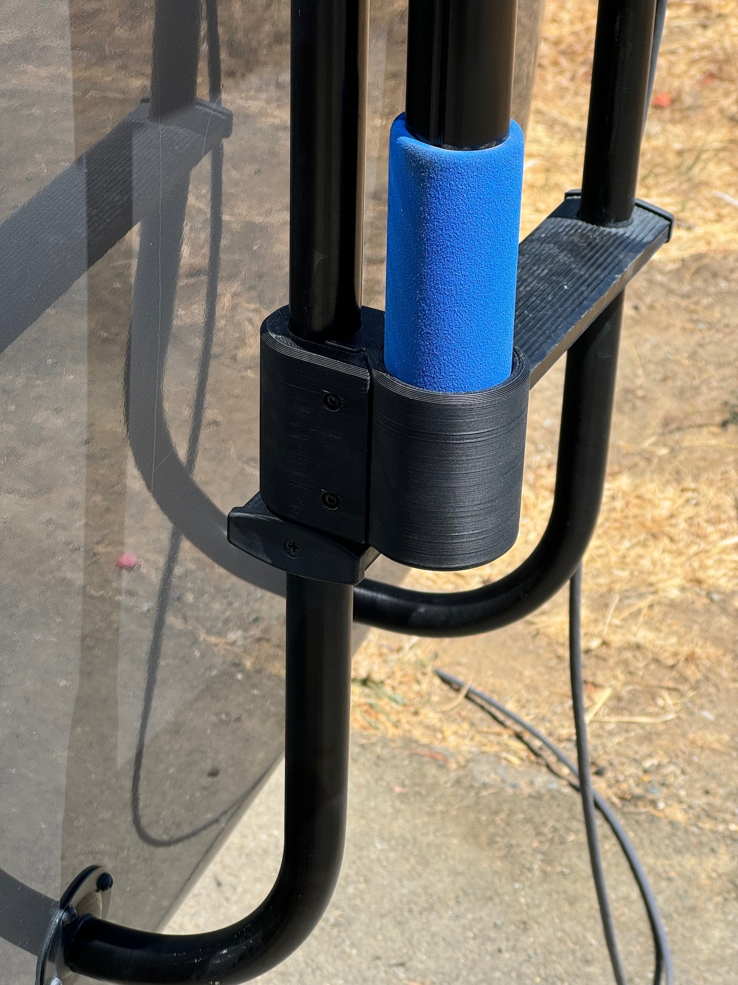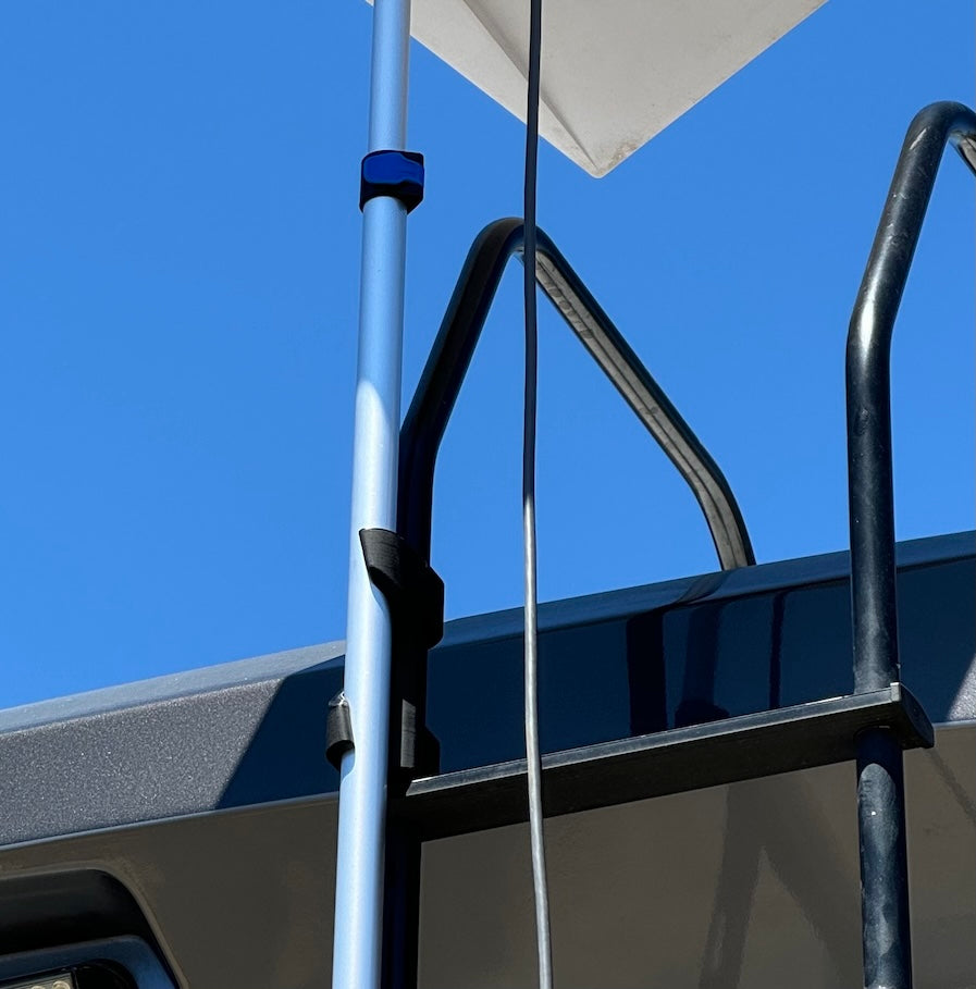 Fästena är exakt utformade för att omsluta stegrör med en diameter på 2,5 cm. Den täta passformen säkerställer en stabil och pålitlig infästning som minimerar rörelser och håller din StarLink-panel säkert på plats. Det övre fästet håller stången, medan den nedre koppen stöder stångens undersida mot stegen.