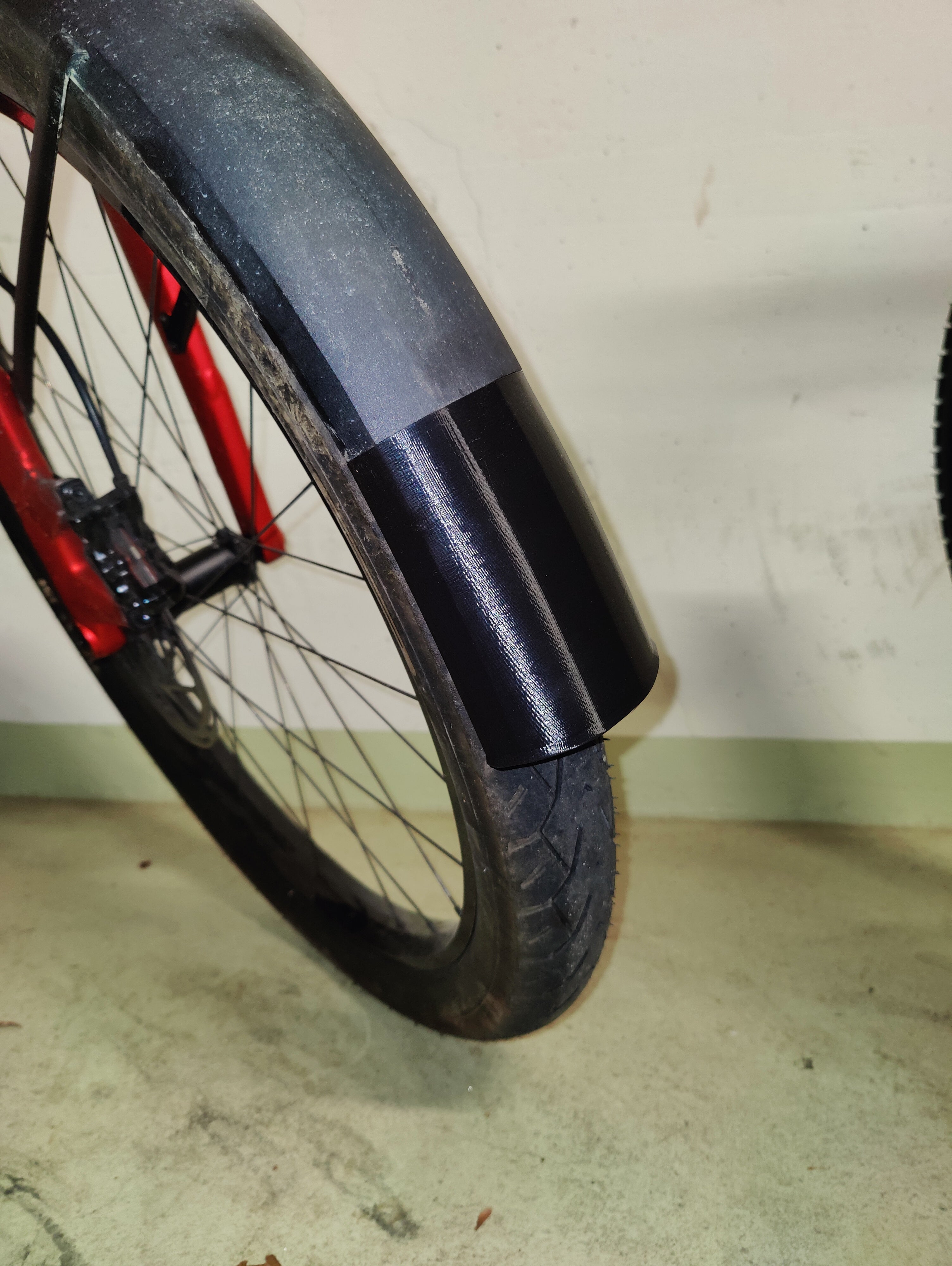 Förlängningen lägger till 8 cm till din cykels framskärm och är 1 cm bredare nedtill, vilket optimerar stänkskyddet. Den tredelade konstruktionen är enkel att montera och ger en robust enhet. Till skillnad från standarddelar som bara klickas på, är denna förlängning säkert fäst med skruvar, vilket säkerställer att den sitter på plats under alla körförhållanden. De befintliga hålen i din cykels framskärm kan användas för en enkel och okomplicerad installation.
