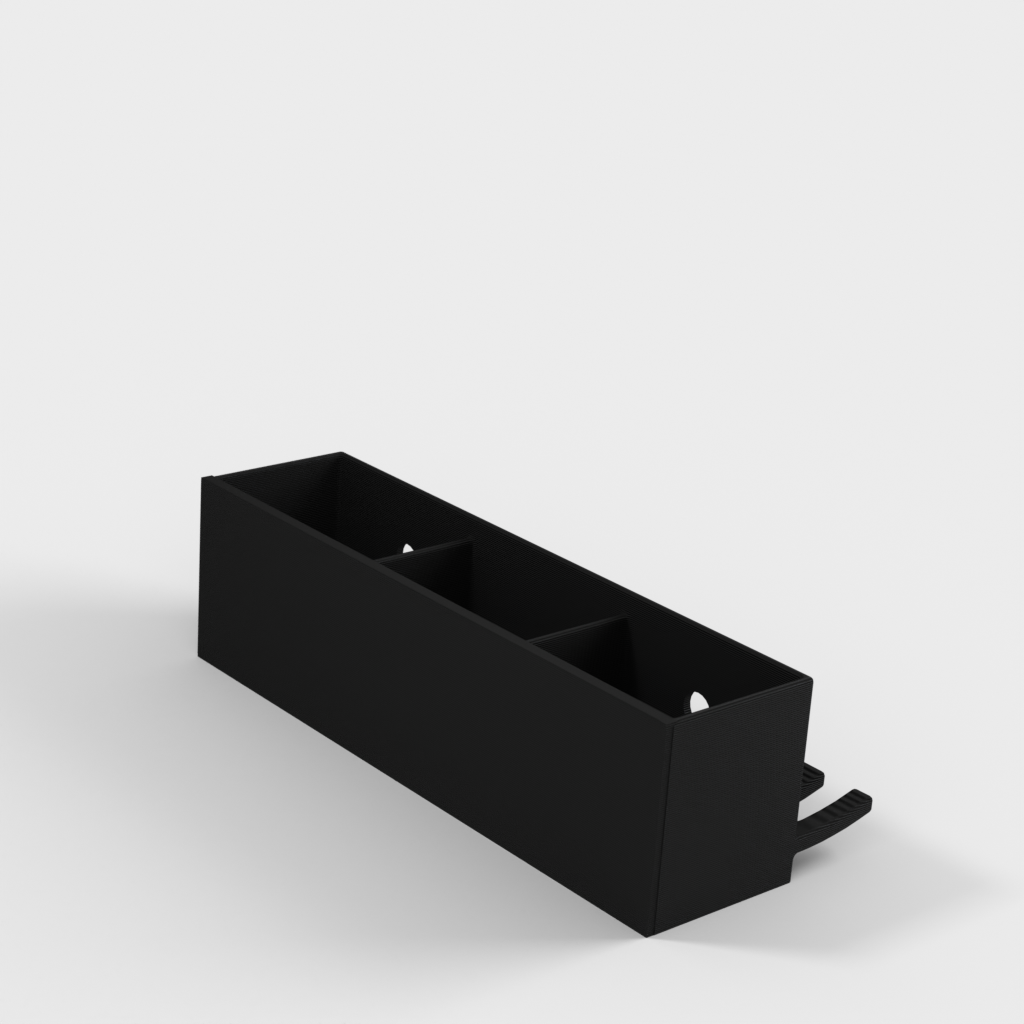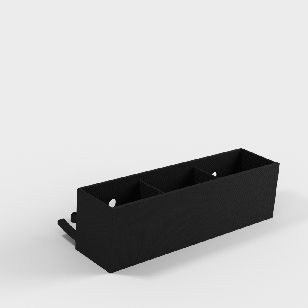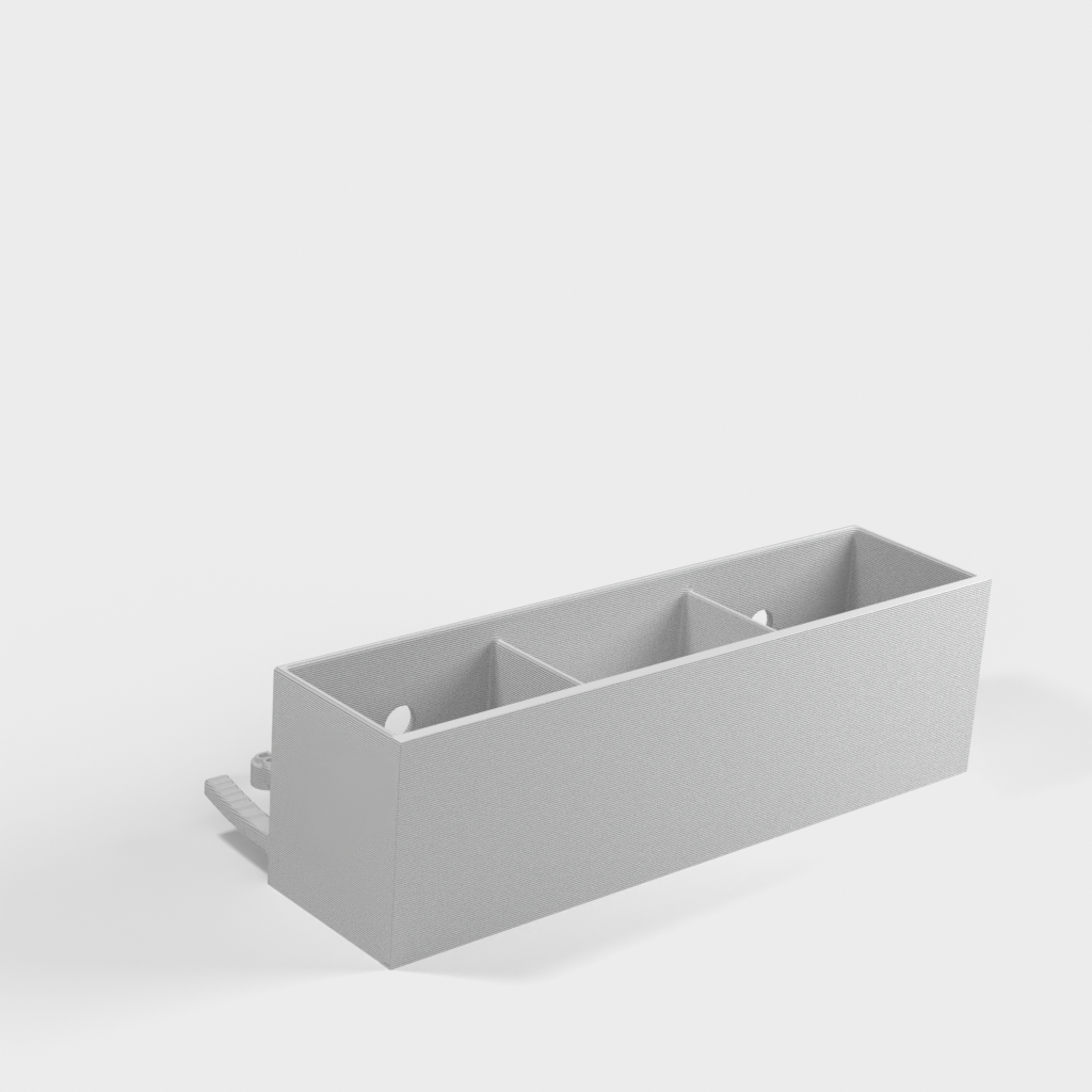 Denna praktiska tandborsthållare är utformad för väggmontering och erbjuder en prydlig förvaringslösning för ditt badrum. Hållaren är utrustad med spår i olika storlekar – 8 mm, 9 mm och 10 mm – vilket säkerställer att både stora och små tandborstar kan placeras stabilt och inom räckhåll.