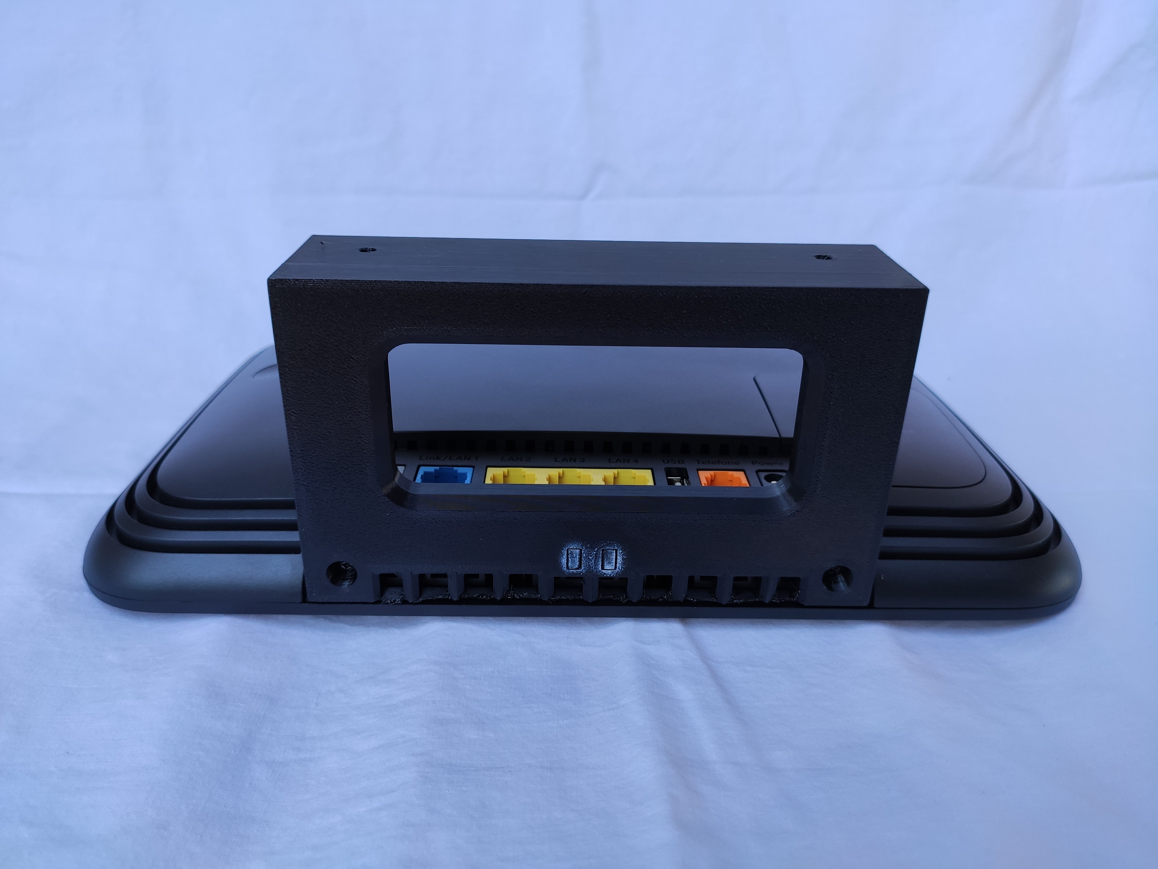Detta väggfäste är speciellt utformat för Telekom Speedport Smart 4 Plus- routern och erbjuder en funktionell lösning för att montera enheten på väggen. Det fungerar som en ersättning för originalstativet och hjälper till att frigöra utrymme på skrivbord eller hyllor. Genom att placera routern på väggen kan du uppnå en mer organiserad installation som minskar röran och ger ett renare utseende.