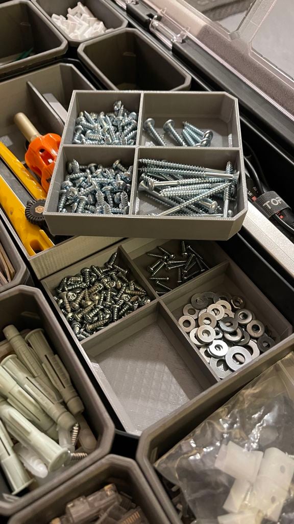 Denna specialdesignade insats är skapad för att optimera den övre mittsektionen av din Husky 22-tums W 22-fackiga Connect Cantilever Small Parts Organizer. Den anpassade förvaringslösningen erbjuder ett effektivt sätt att organisera dina smådelar, vilket gör det enklare att hålla reda på och snabbt hitta diverse komponenter. Insatsen fungerar som en praktisk bricka och skapar dedikerade fack för mindre föremål som skruvar, muttrar, bits eller elektronikdelar.