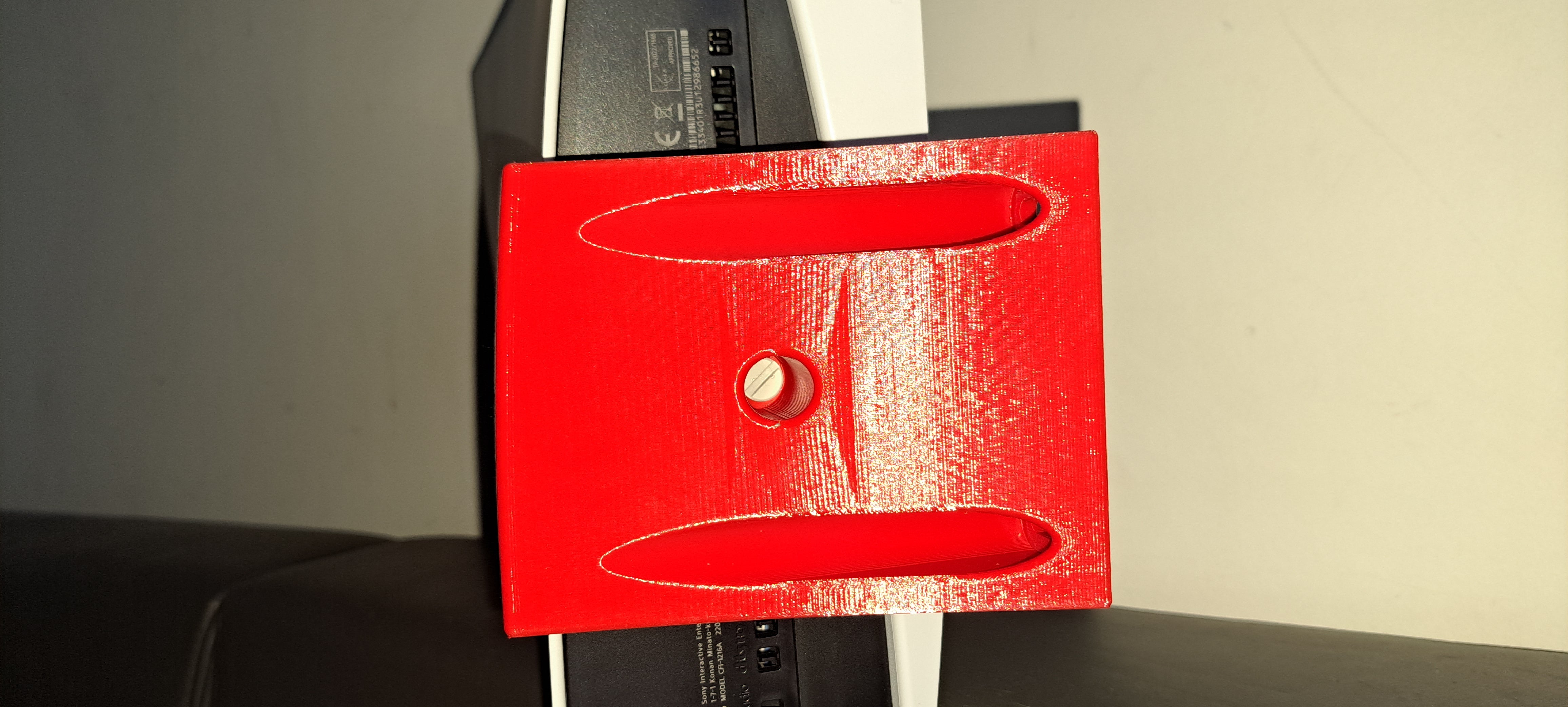 Fästets ovansida är avsiktligt utformad för att vara liten och diskret. Detta gör att du kan hänga ytterligare tillbehör, som ett handkontrollstativ, på konsolens frontpanel utan att det påverkar funktionalitet eller estetik. Den kompakta ovansidan hjälper också till att förhindra att konsolen tippar framåt, vilket ger extra stabilitet för din PlayStation 5.