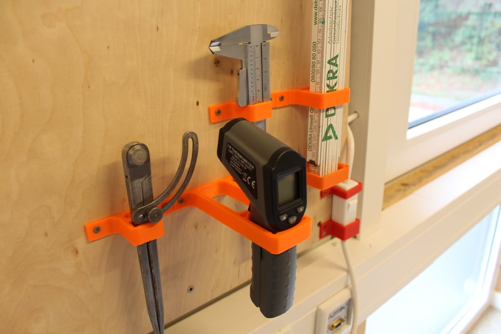 Som en integrerad del av systemet 'Ideenreich tool wall', stöder detta väggfäste effektiv organisering av dina verktyg i verkstäder, FabLabs och makerspaces. En organiserad vägg minskar slöseri med tid och ökar produktiviteten genom att hålla viktiga verktyg som din infraröda termometer översiktligt ordnade.
