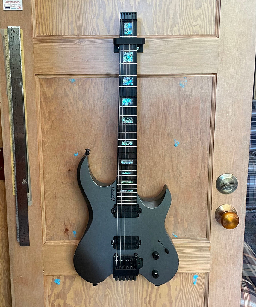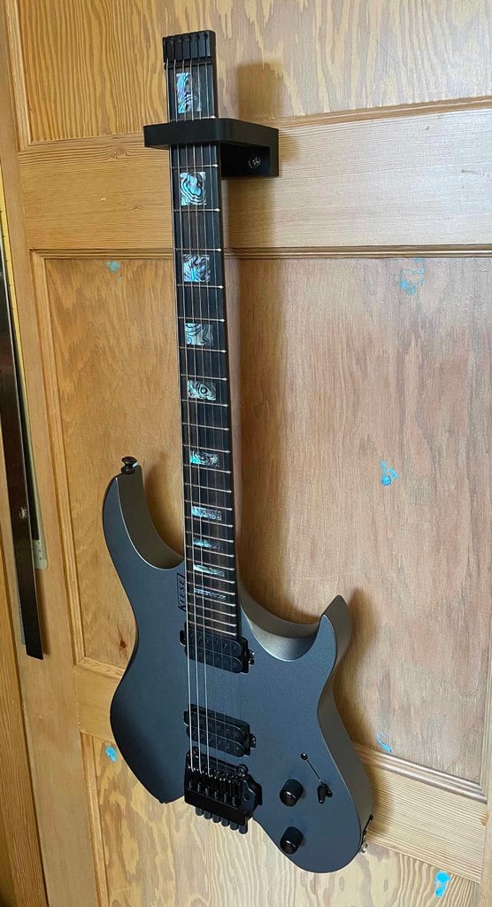 Vertikalt väggfäste för huvudlösa elgitarrer