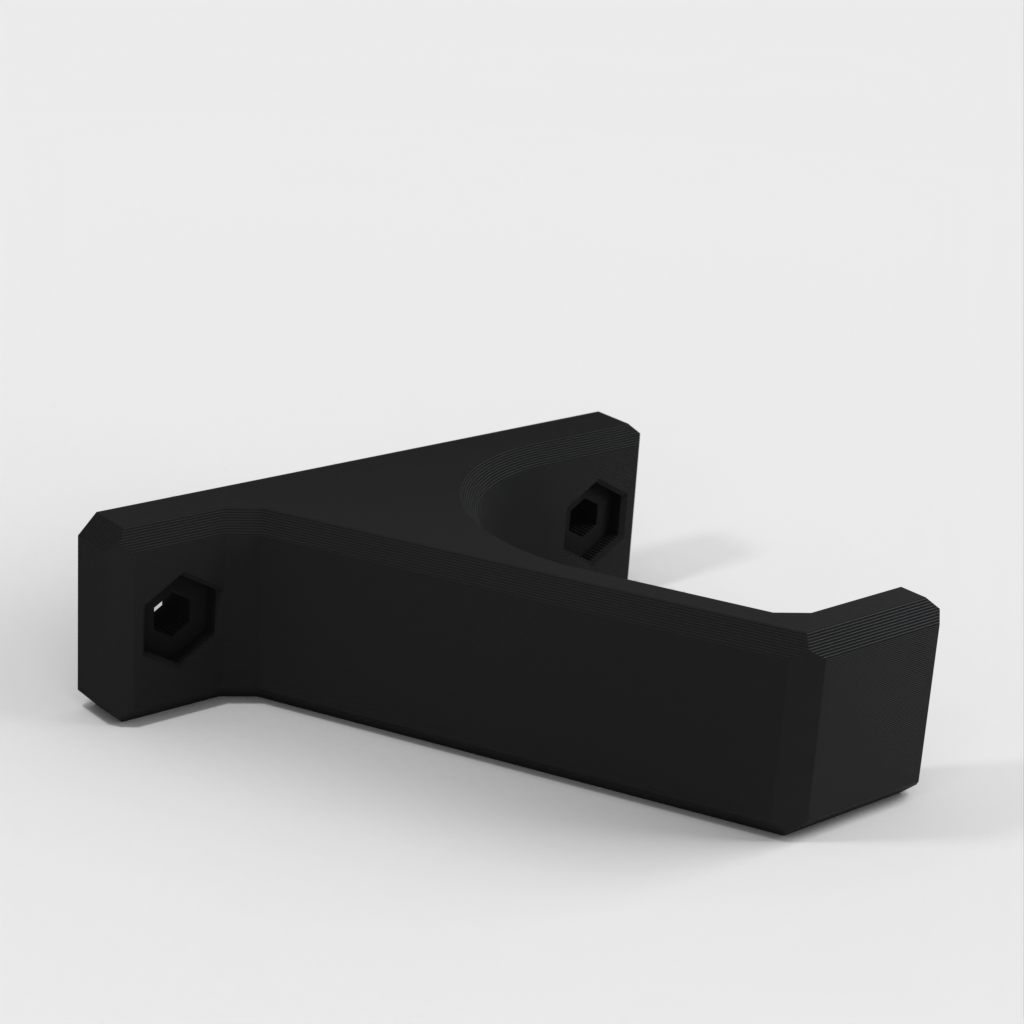 MTB cykelhjälmshängare med praktisk krokdesign som kan monteras på väggen för enkel och säker förvaring av din hjälm. De sexkantiga skruvhålen säkerställer utskriftsvänlig produktion och modellen har ett infällt utrymme för skruvhuvudet så att det inte stör hjälmen. Avståndet mellan monteringshålen är 53 mm, lämpligt för skruvar upp till 4 mm diameter och 8 mm diameter och 2 mm tjocka huvuden.