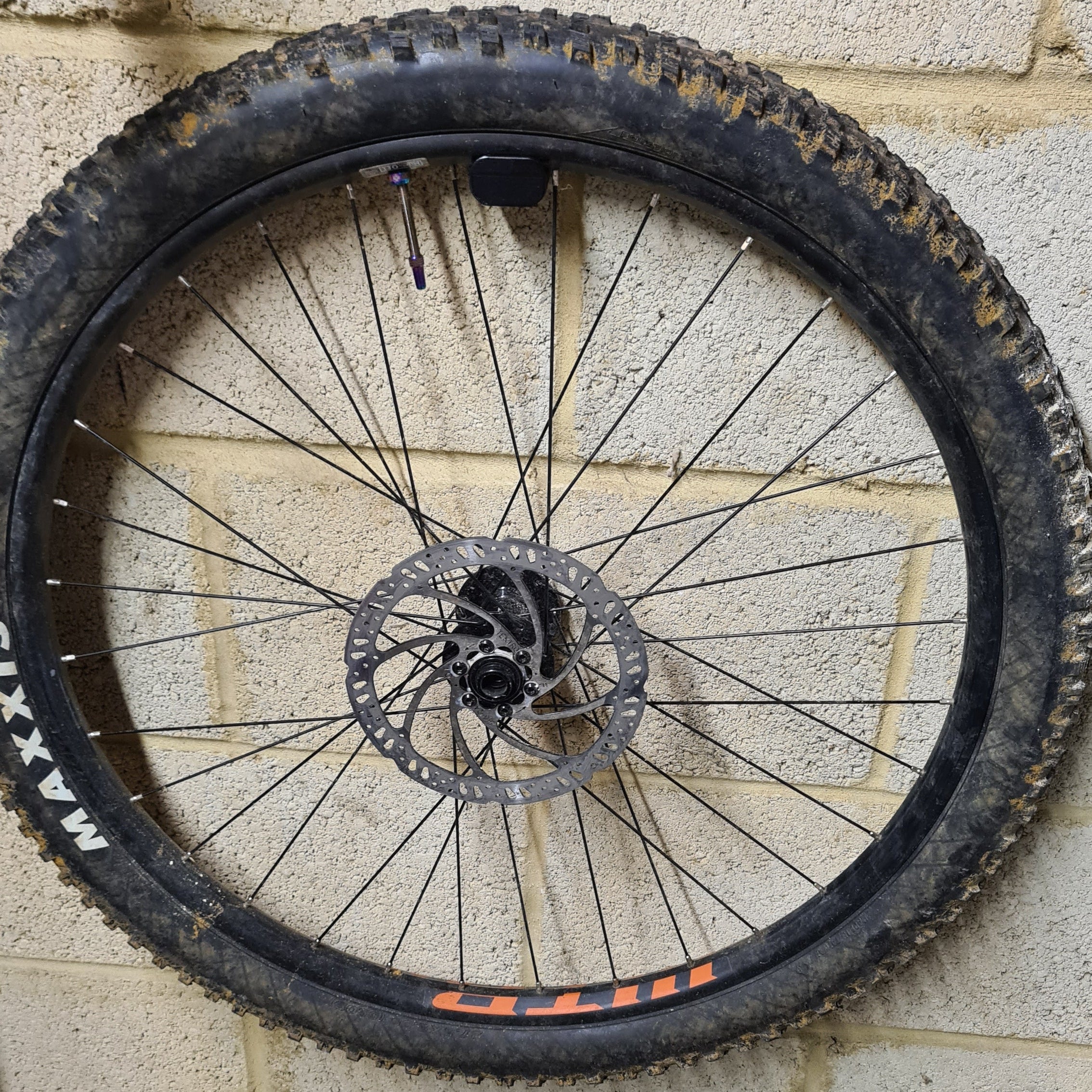 Väggfäste för att hänga upp ett 27" (tum) cykelhjul, till exempel på en vägg i garaget. Fästet passar utrymmet mellan 2 vanliga cykelekrar.