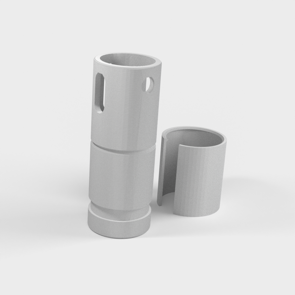 Denna adapter är utformad för att tillåta Dyson DC59 (och liknande) handdammsugare att dammsuga "rumspåsar" (klädförvaringspåsar). Eftersom dessa dammsugare har en utskjutande del som hindrar munstycket från att täta i linje med påsmunstycket, kan du inte få en ordentlig tätning utan denna bit.