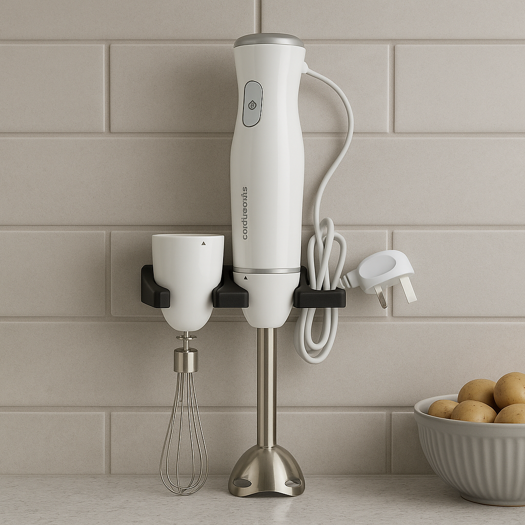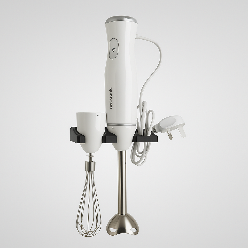 Optimera ditt kök och håll dig organiserad med detta smarta väggfäste för din stavmixer. Fästet är utformat för att skapa en prydlig och funktionell miljö och låter dig enkelt förvara din stavmixer, dess tillbehör och sladd på ett ställe. Detta frigör värdefullt skåputrymme och håller dina köksbänkskivor rena.