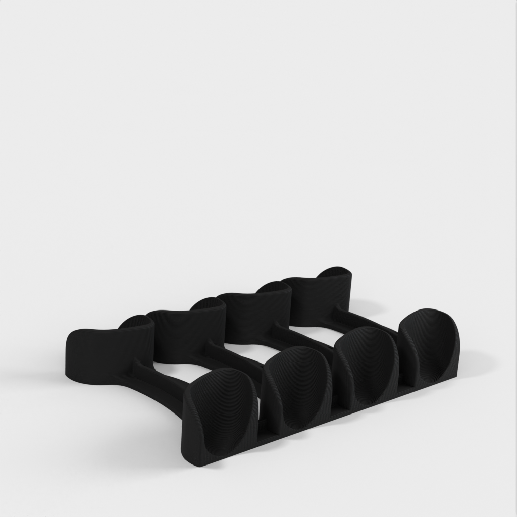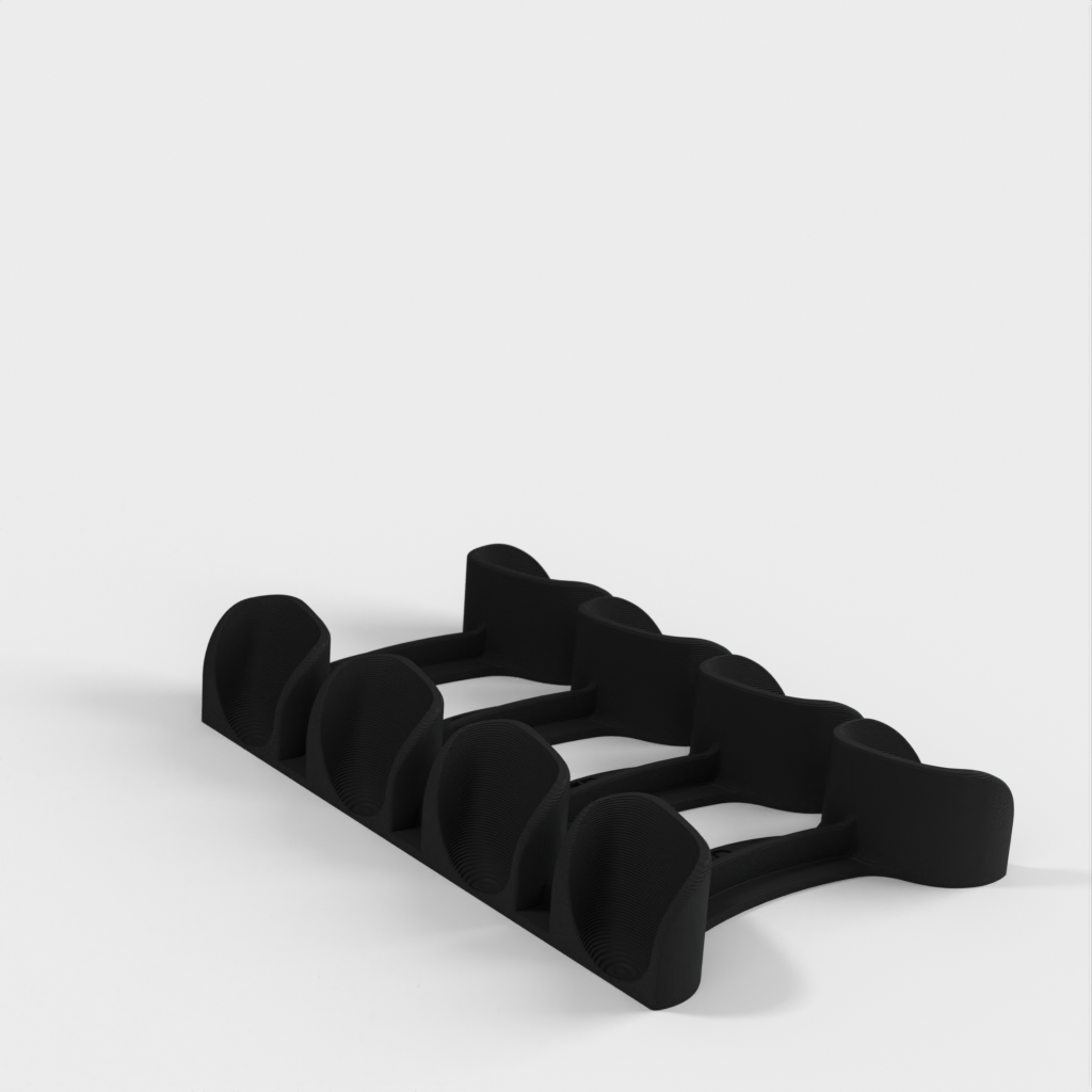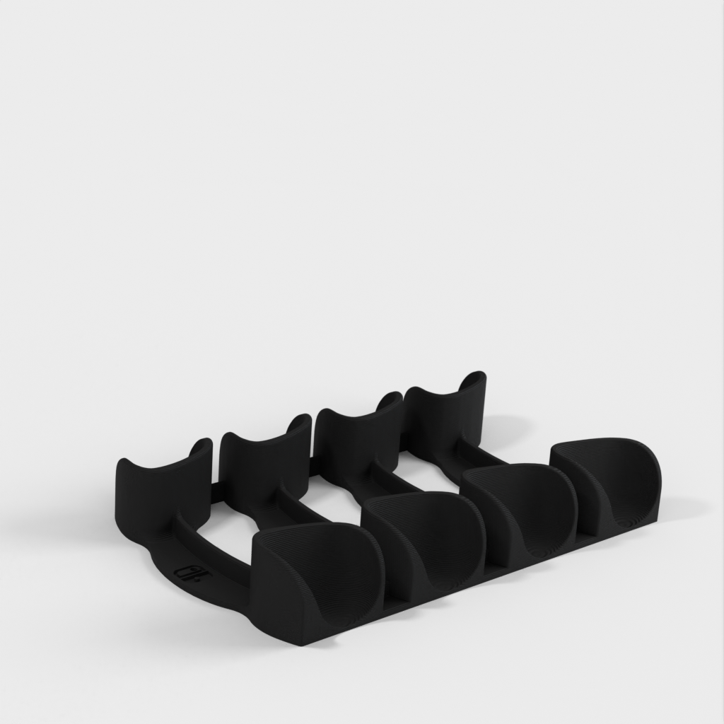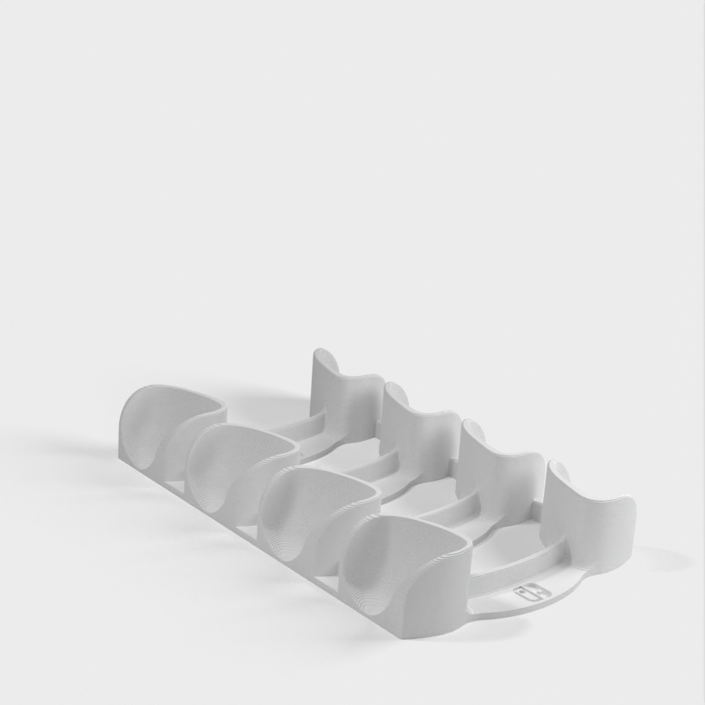 Detta är ett horisontellt stativ för fyra Nintendo Switch Pro-kontroller. Den sparar utrymme och får lätt plats i en låda, men har även plats för flera kontroller.