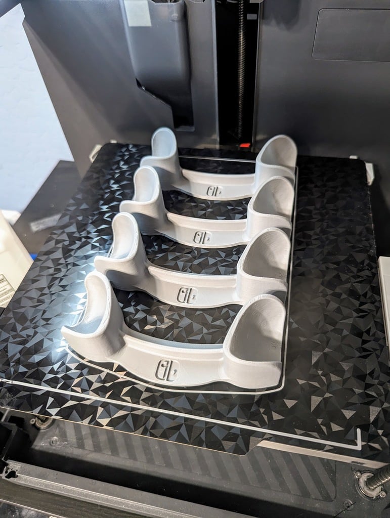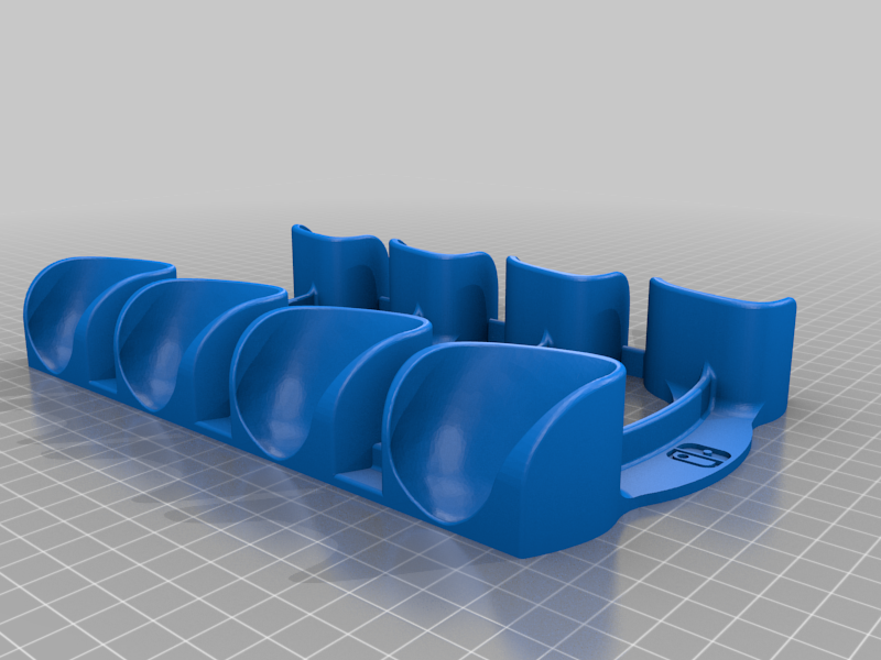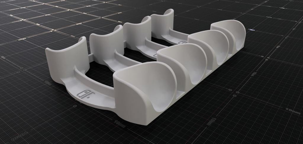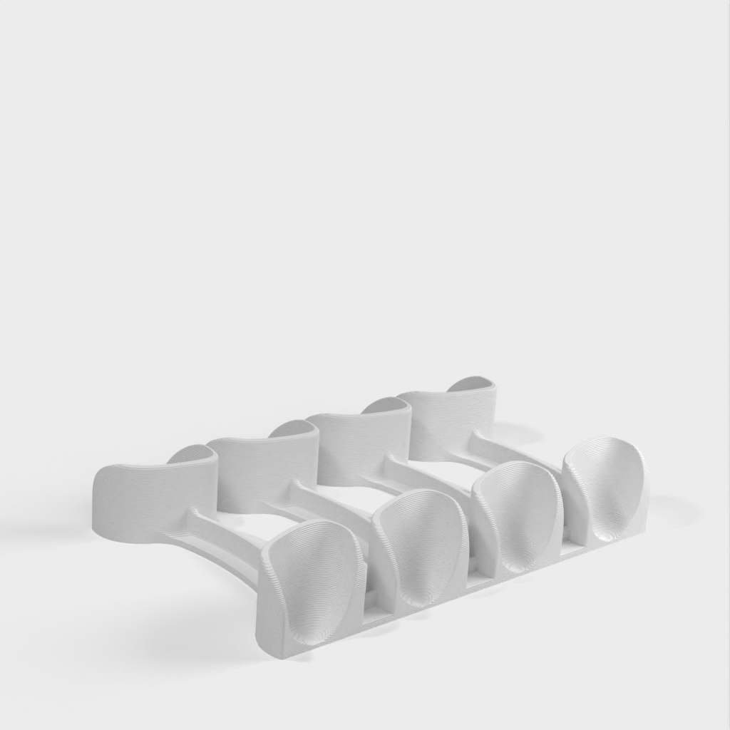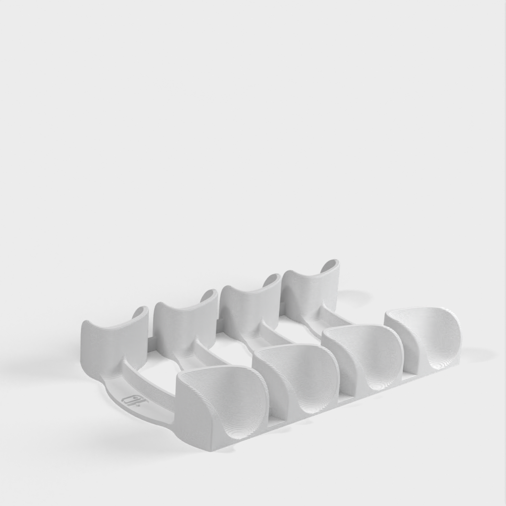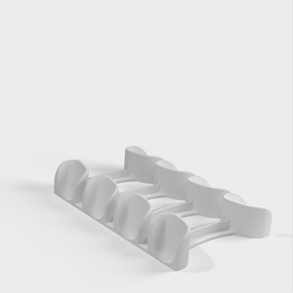 Detta är ett horisontellt stativ för fyra Nintendo Switch Pro-kontroller. Den sparar utrymme och får lätt plats i en låda, men har även plats för flera kontroller.