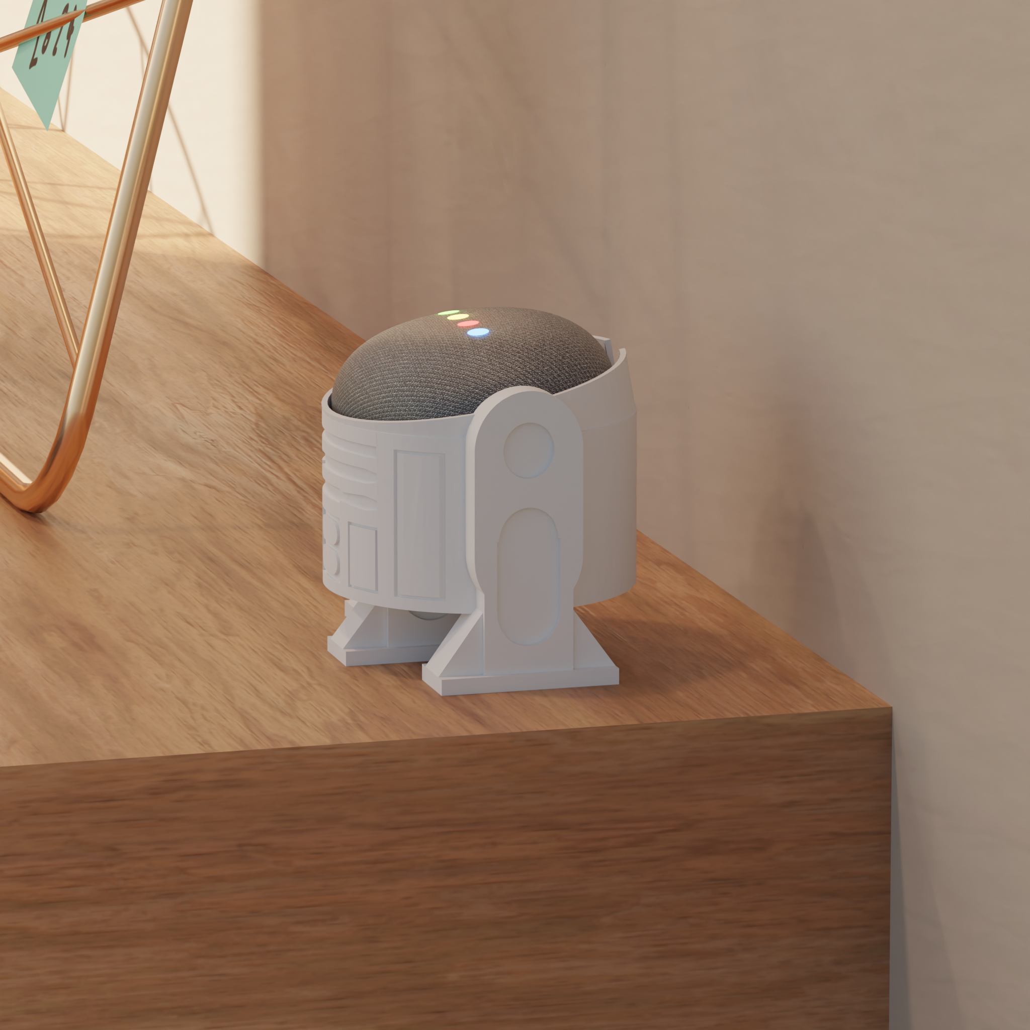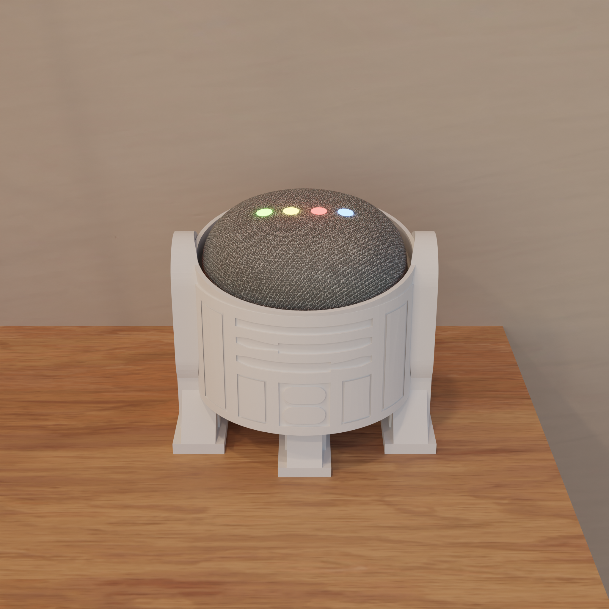 Rolig hållare för en Google Nest Mini 2:a generationen, designad som R2D2 från Star Wars.
