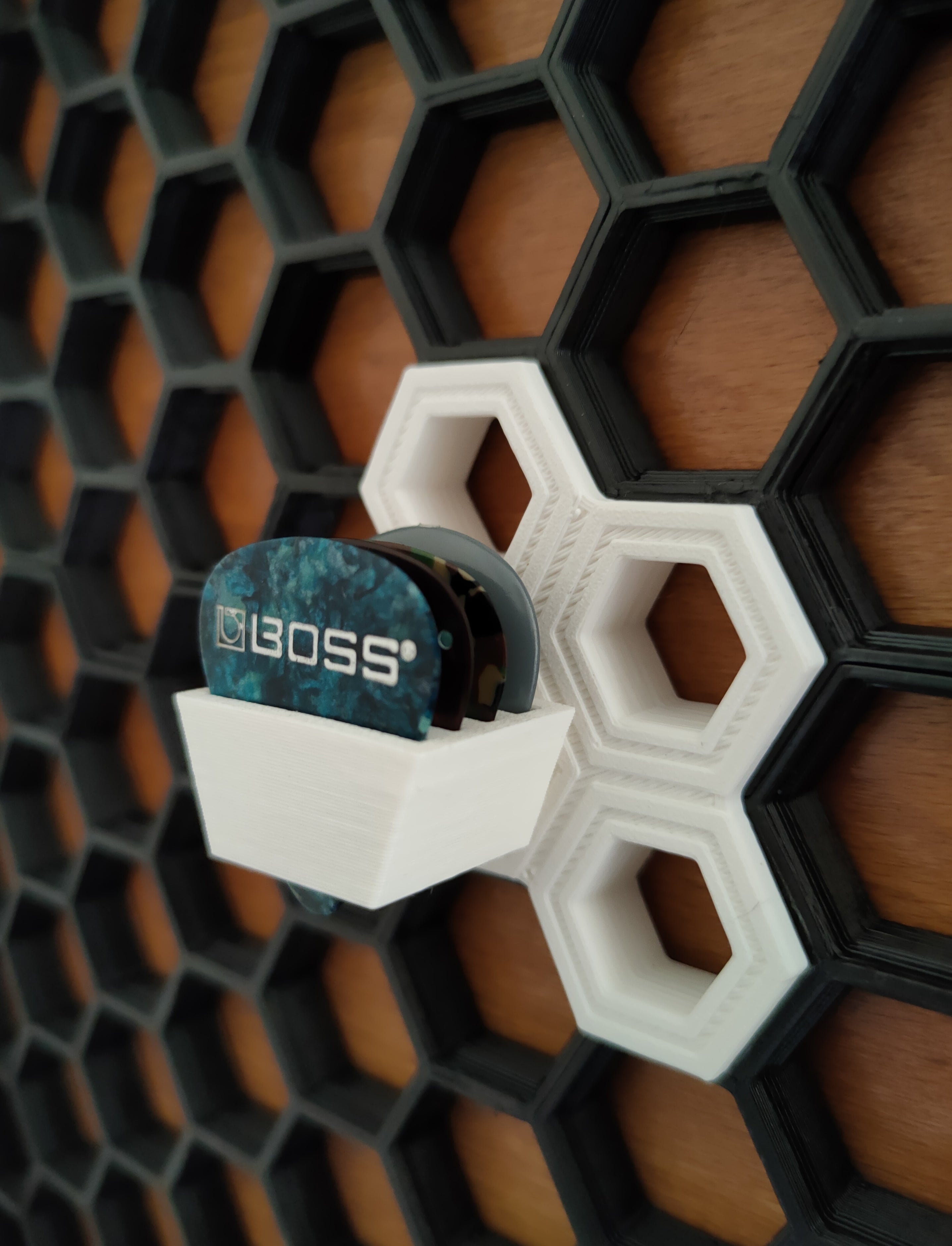 Hållare för gitarrplektrum för väggmontering med honeycomb-funktion