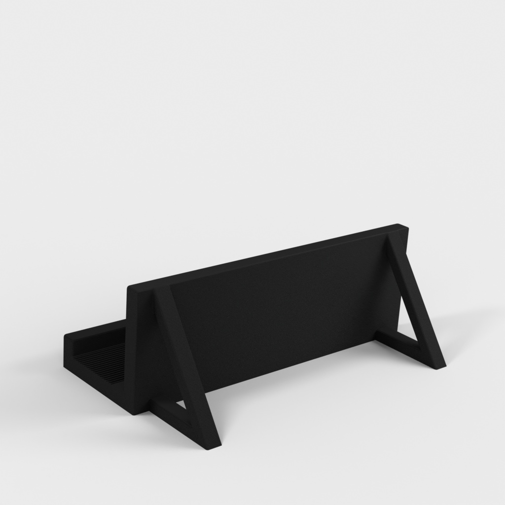 Med inbyggda spår säkerställer stativet att dina vinylskivor står säkert och stabilt, utan risk för att de tippar eller halkar. Den väl genomtänkta designen passar sömlöst in i olika interiörer, från moderna till klassiska, och bidrar till ett rent uttryck. För att förhindra oönskad rörelse på hala ytor är stativet utrustat med små gummifötter på undersidan, vilket ger en stabil position.