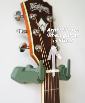 Denna självlåsande gitarrhängare är utformad för att ge en säker och praktisk lösning för förvaring av din gitarr. När gitarren placeras i hållaren aktiveras en automatisk låsmekanism som säkert håller instrumentet på plats och förhindrar att det faller. Hängaren låter dig visa upp din gitarr på ett elegant sätt, oavsett om det är i övningsrummet, vardagsrummet eller sovrummet.