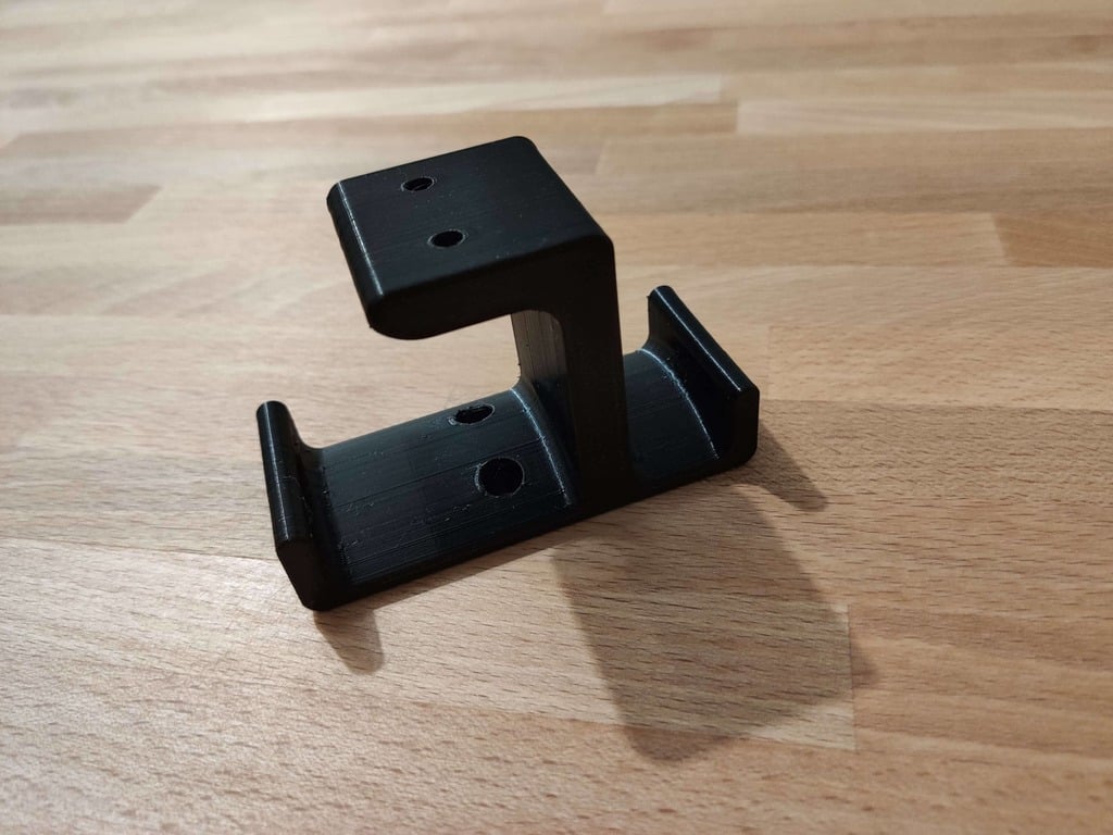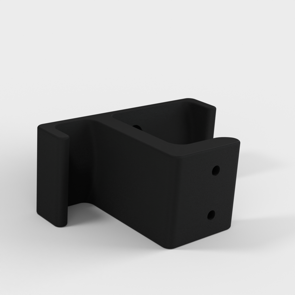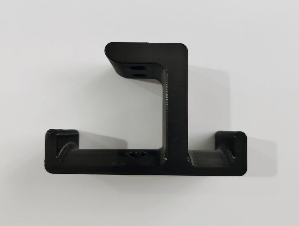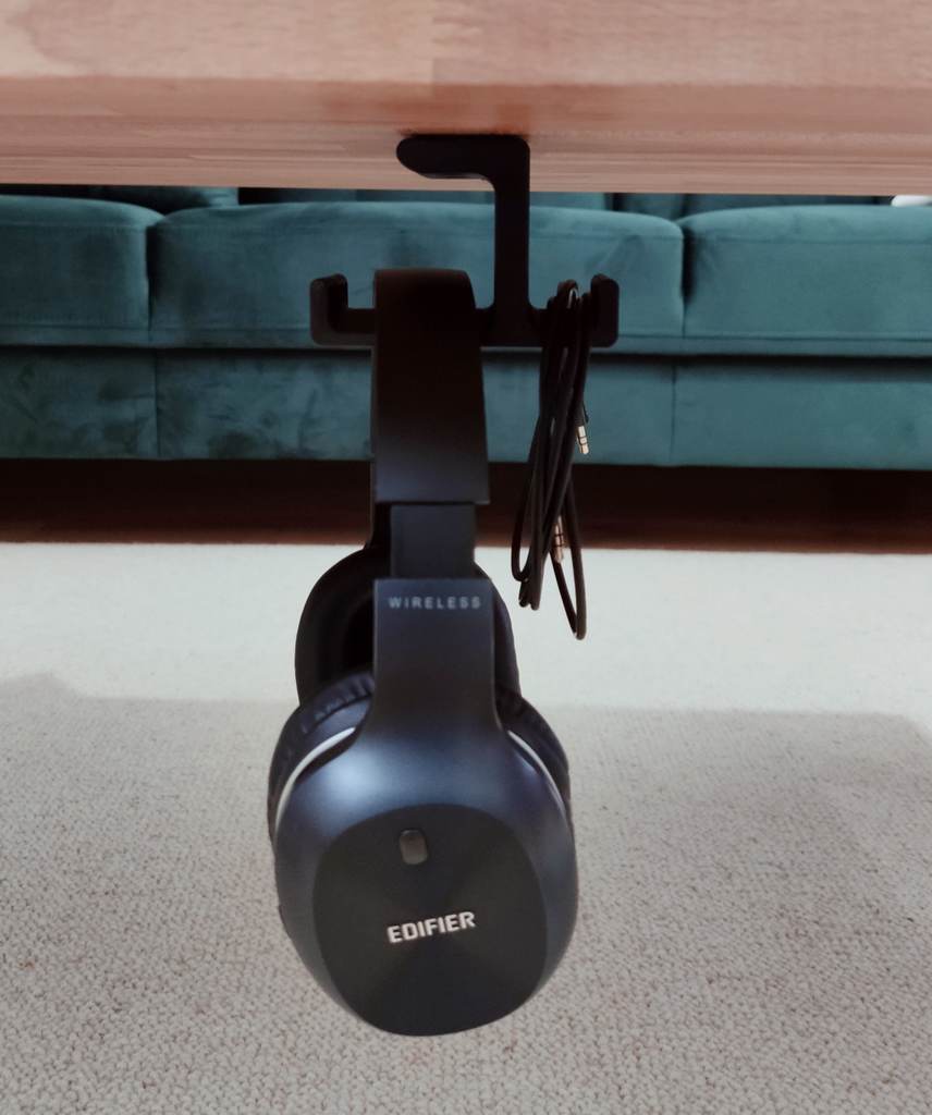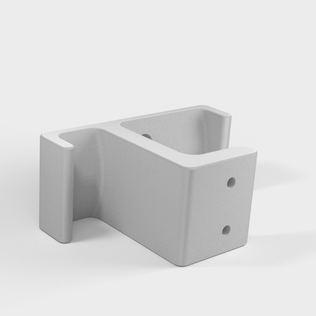 Detta är en hållare som jag designat för ett headset. Du kan skruva eller sticka fast denna hållare under bordet. Hållaren fälls ut från två krokar, en för headsetet och en för kabeln. Hållaren är väldigt stark, så du behöver inte oroa dig för dina hörlurar. För att fästa denna hållare under bordet, använd en M4 träskruvmejsel.