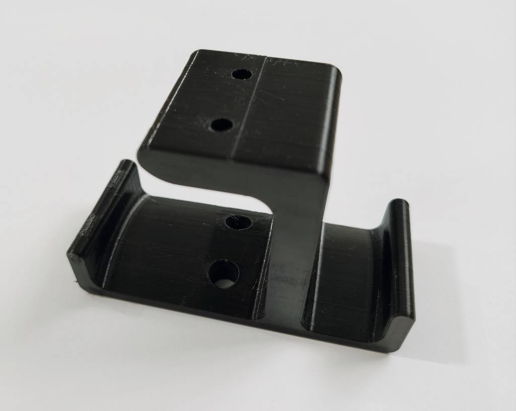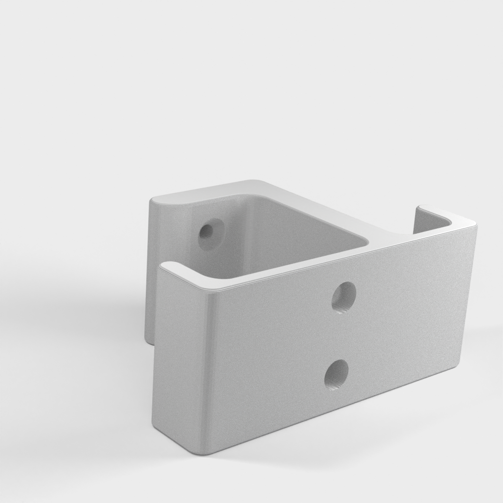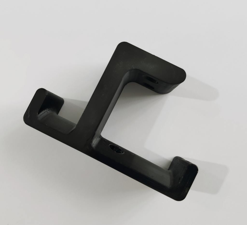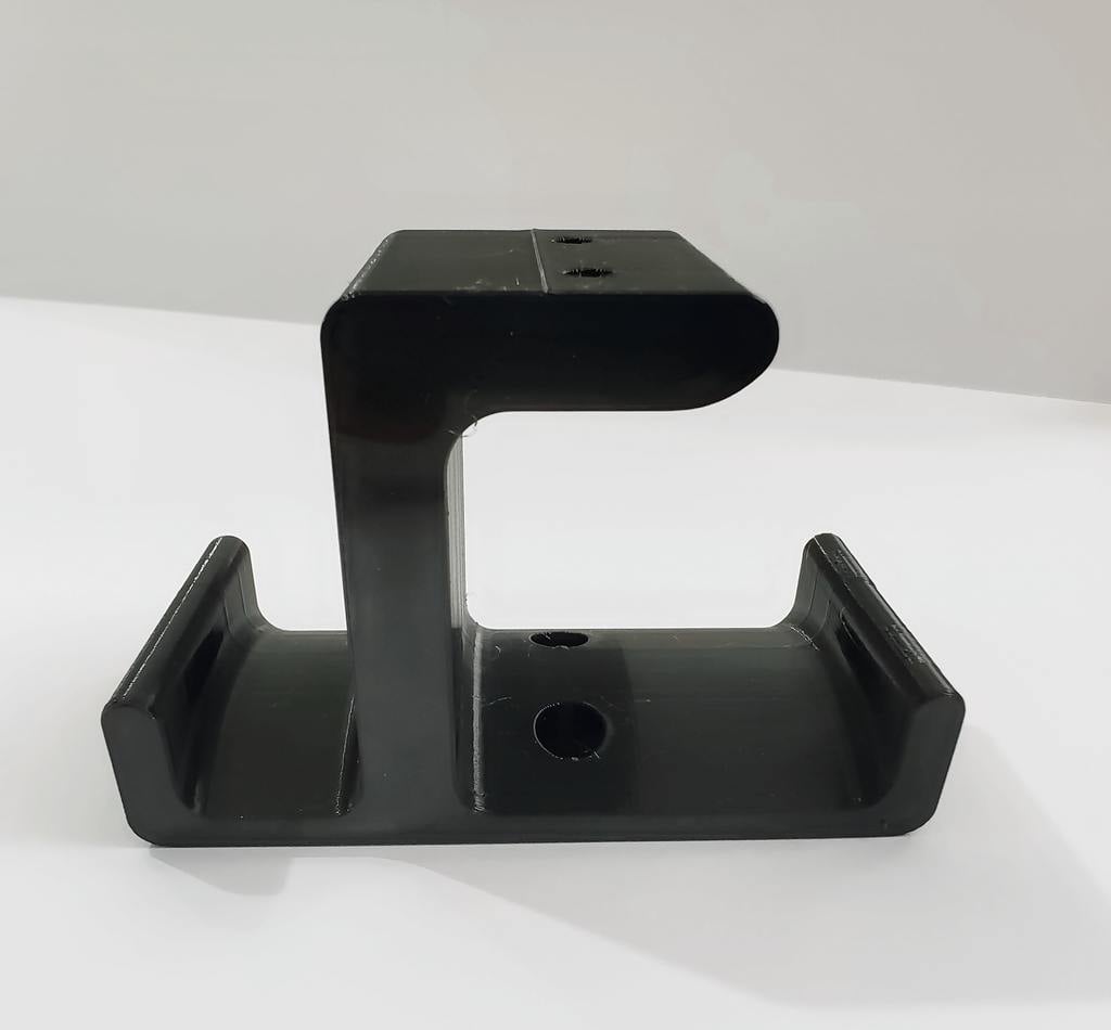 Detta är en hållare som jag designat för ett headset. Du kan skruva eller sticka fast denna hållare under bordet. Hållaren fälls ut från två krokar, en för headsetet och en för kabeln. Hållaren är väldigt stark, så du behöver inte oroa dig för dina hörlurar. För att fästa denna hållare under bordet, använd en M4 träskruvmejsel.