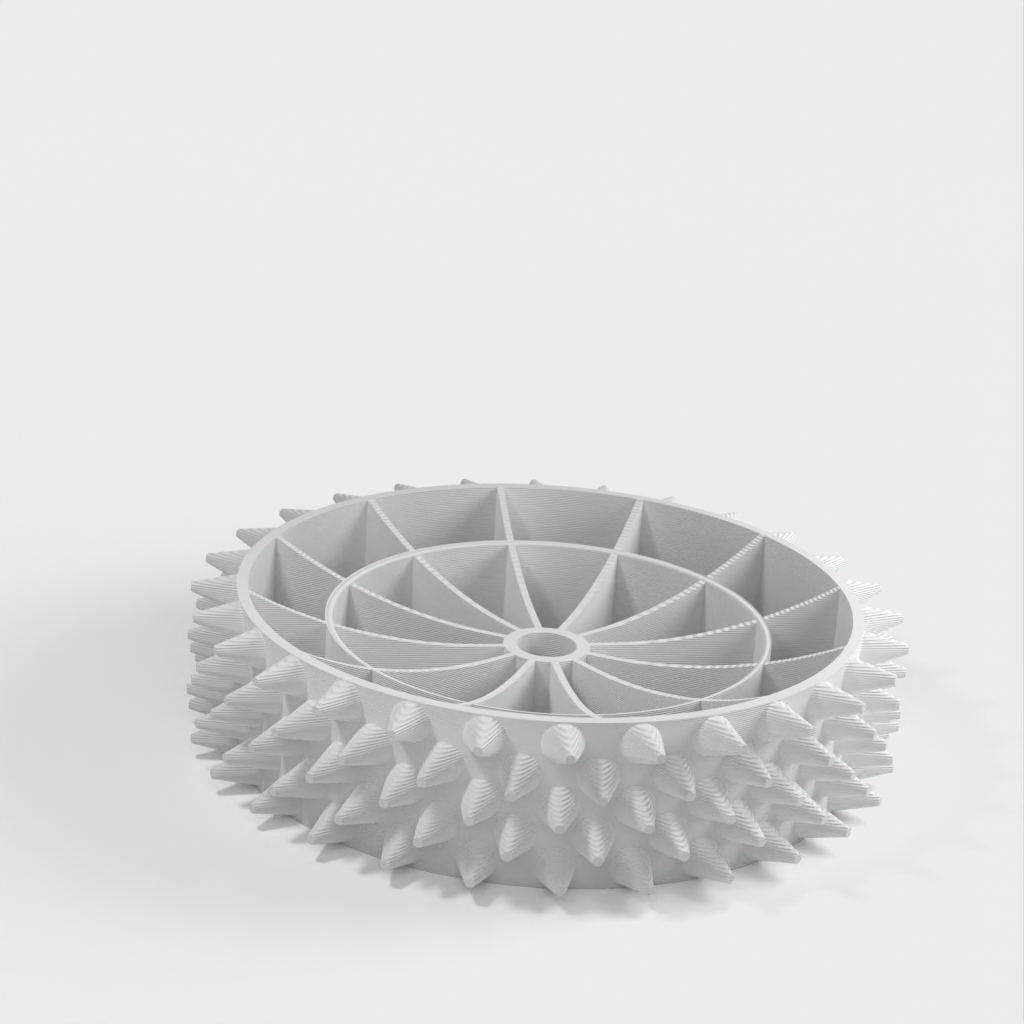 3D-printade terränghjul med spikar för Landroid robotgräsklippare.