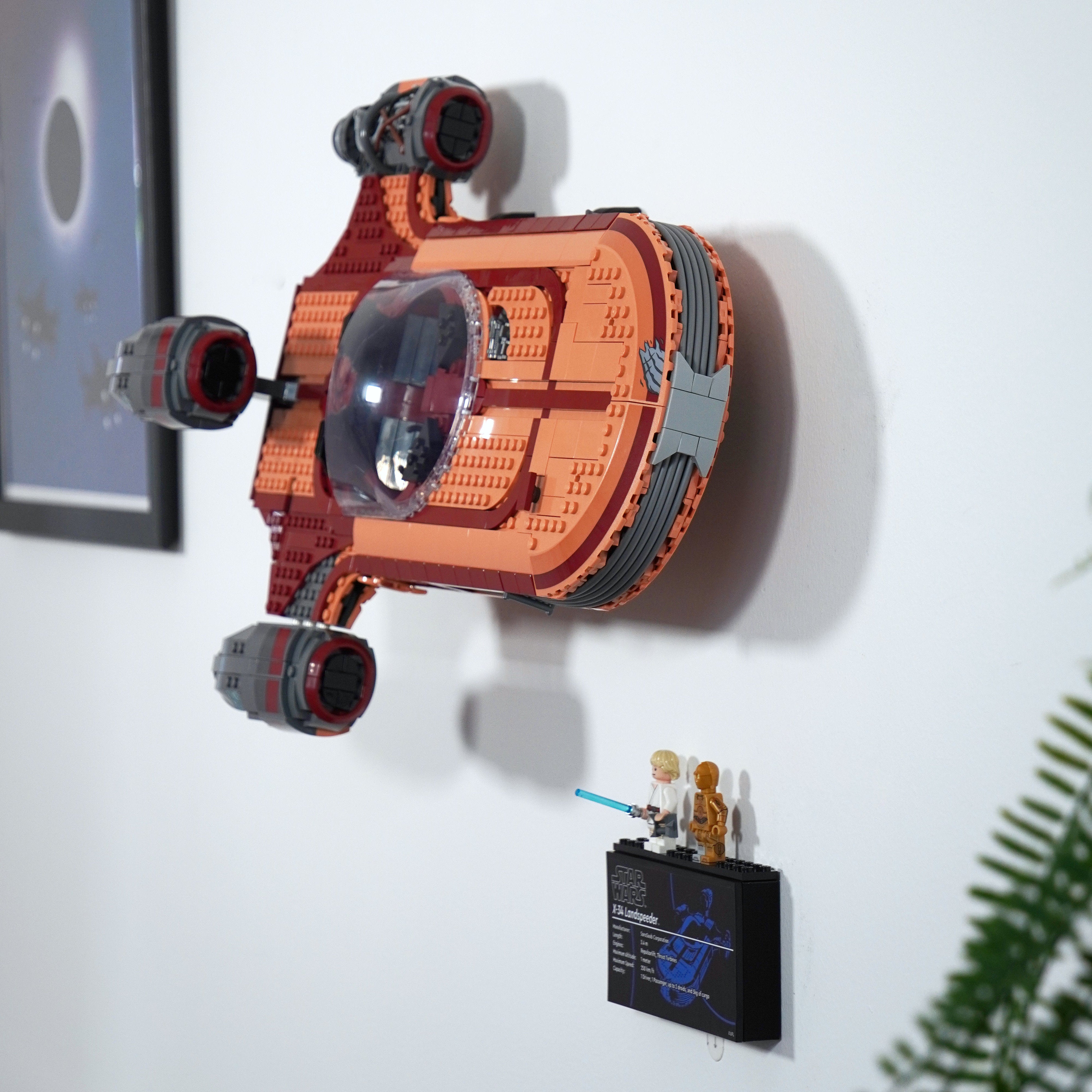 - Väggfäste designat specifikt för Star Wars Luke Skywalkers Landspeeder set 75341.