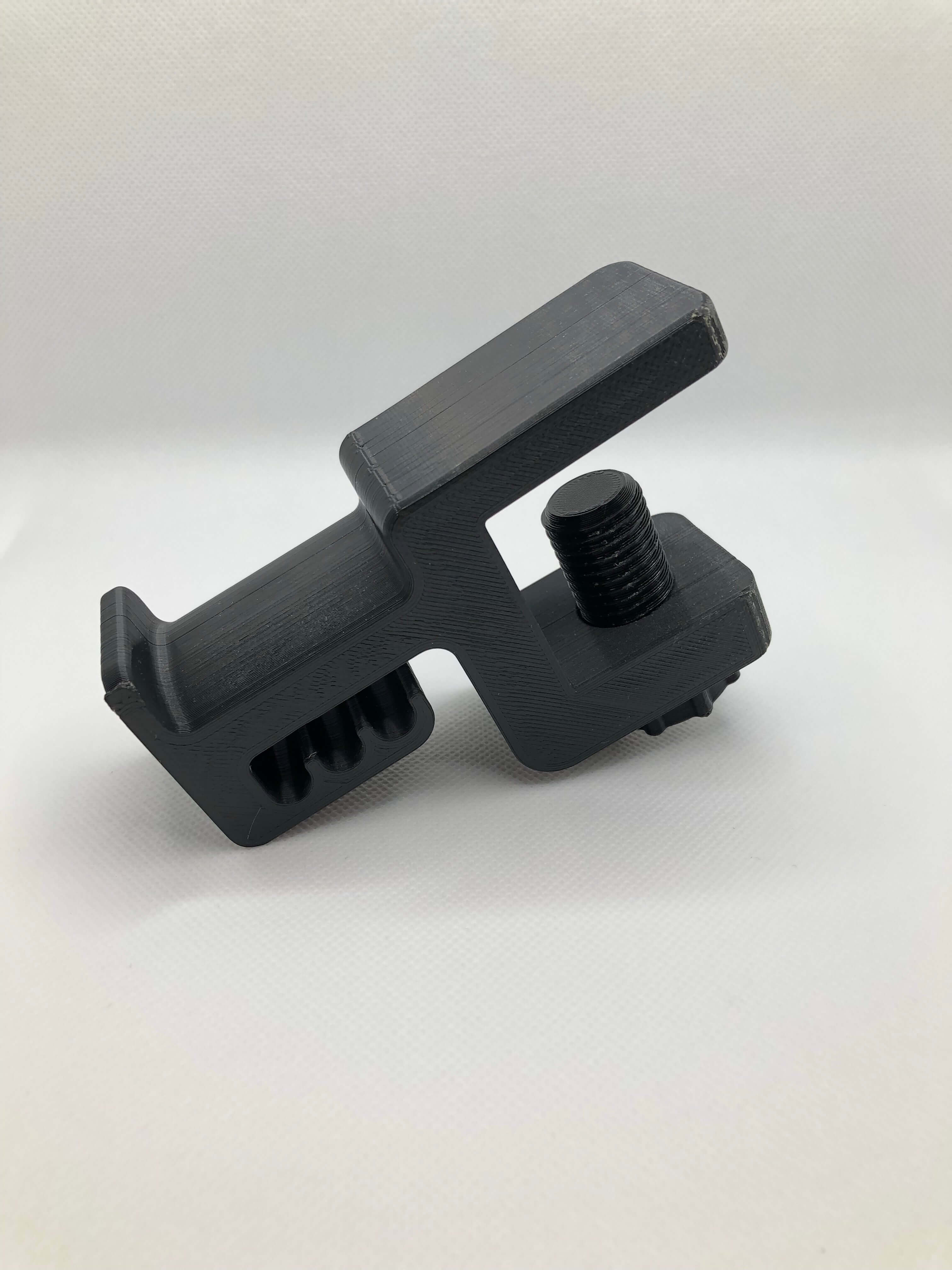 Hållare för dina hörlurar som kan sitta på ett skrivbord, så det behöver inte vara rörigt. Den skruvas enkelt fast på bordets kant med den medföljande skruven.