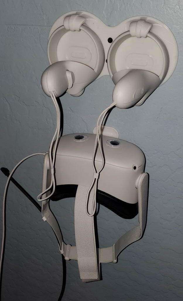 Simeplt väggfäste/upphängning för ett Oculus Quest 2-set.