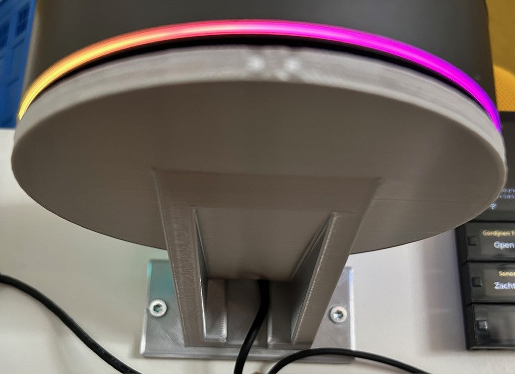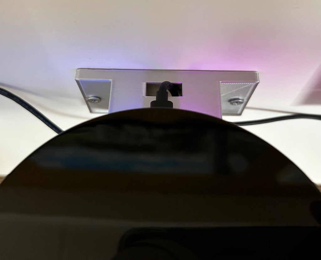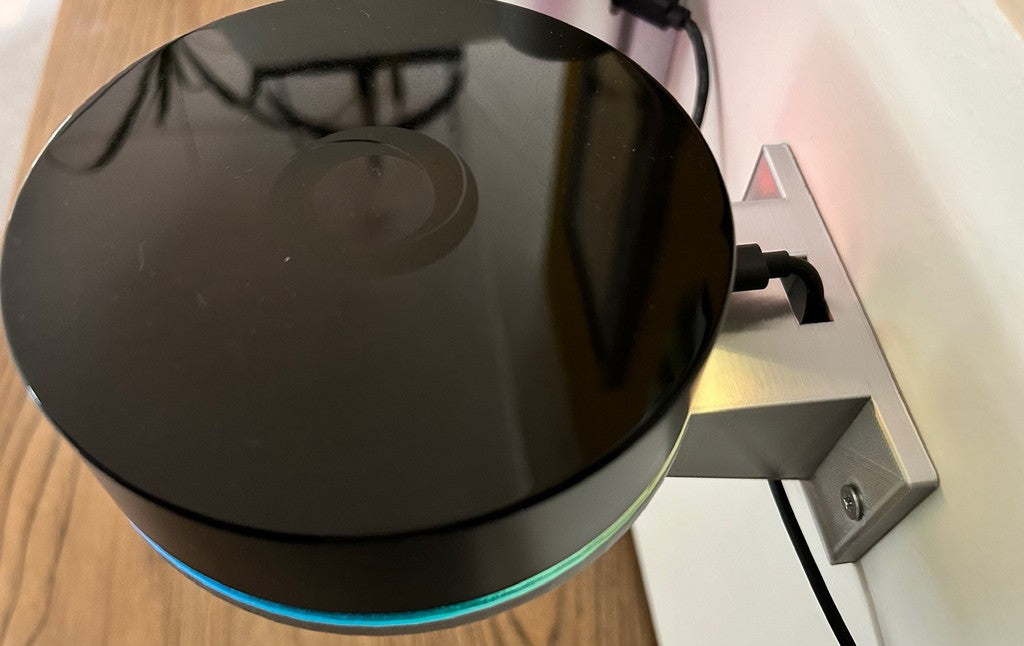 Detta är ett horisontellt väggfäste för Athom Homey Pro 2023 (hockeypuckmodell). Den har ett kabelhål på baksidan så att du kan dra in sladden underifrån för att göra den ännu snyggare.