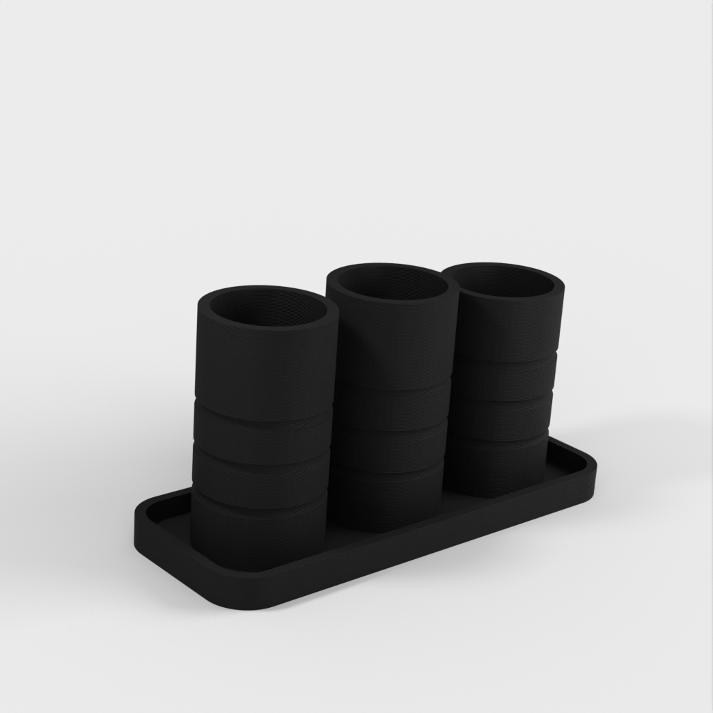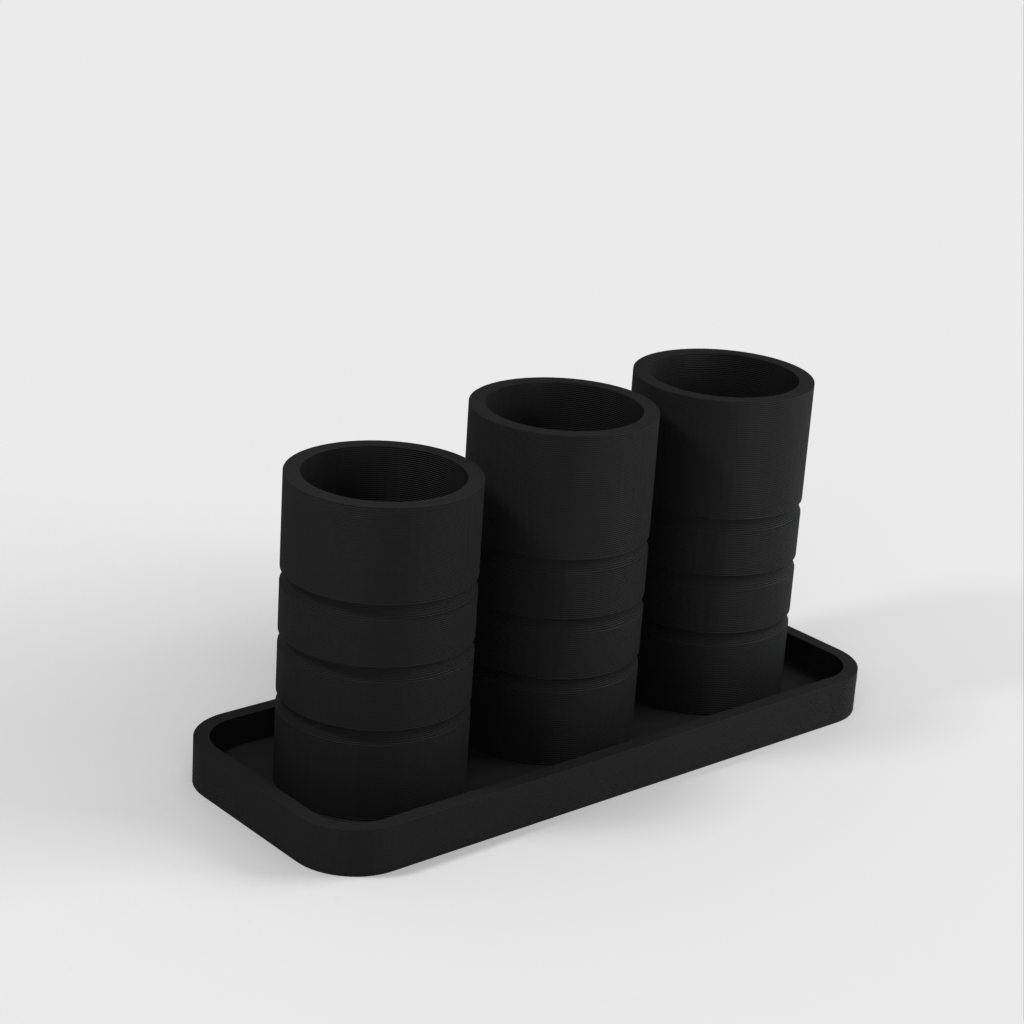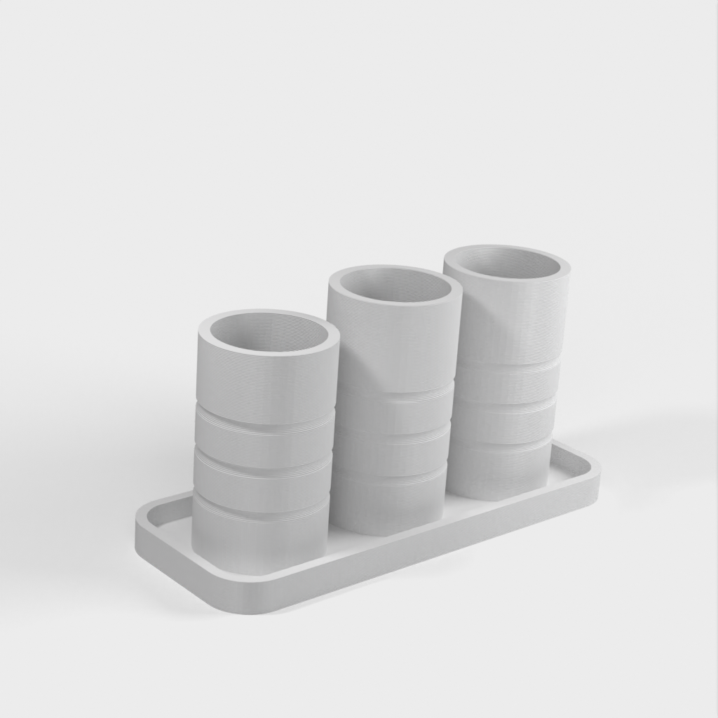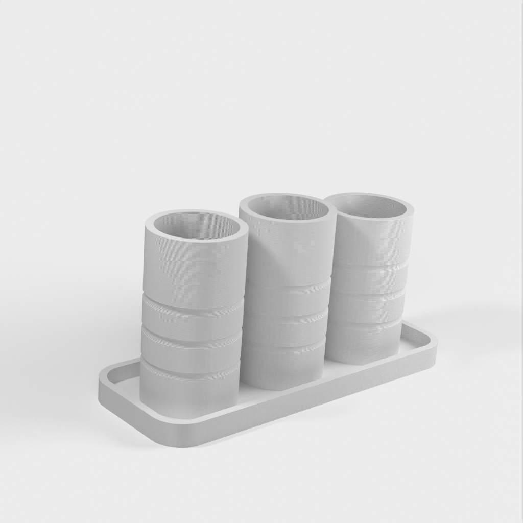 En enkel badrumsarrangör med två primära hållare för tandborstar och en tredje för q-tips eller andra föremål. Hjälp till att hålla ditt badrum snyggt och organiserat.