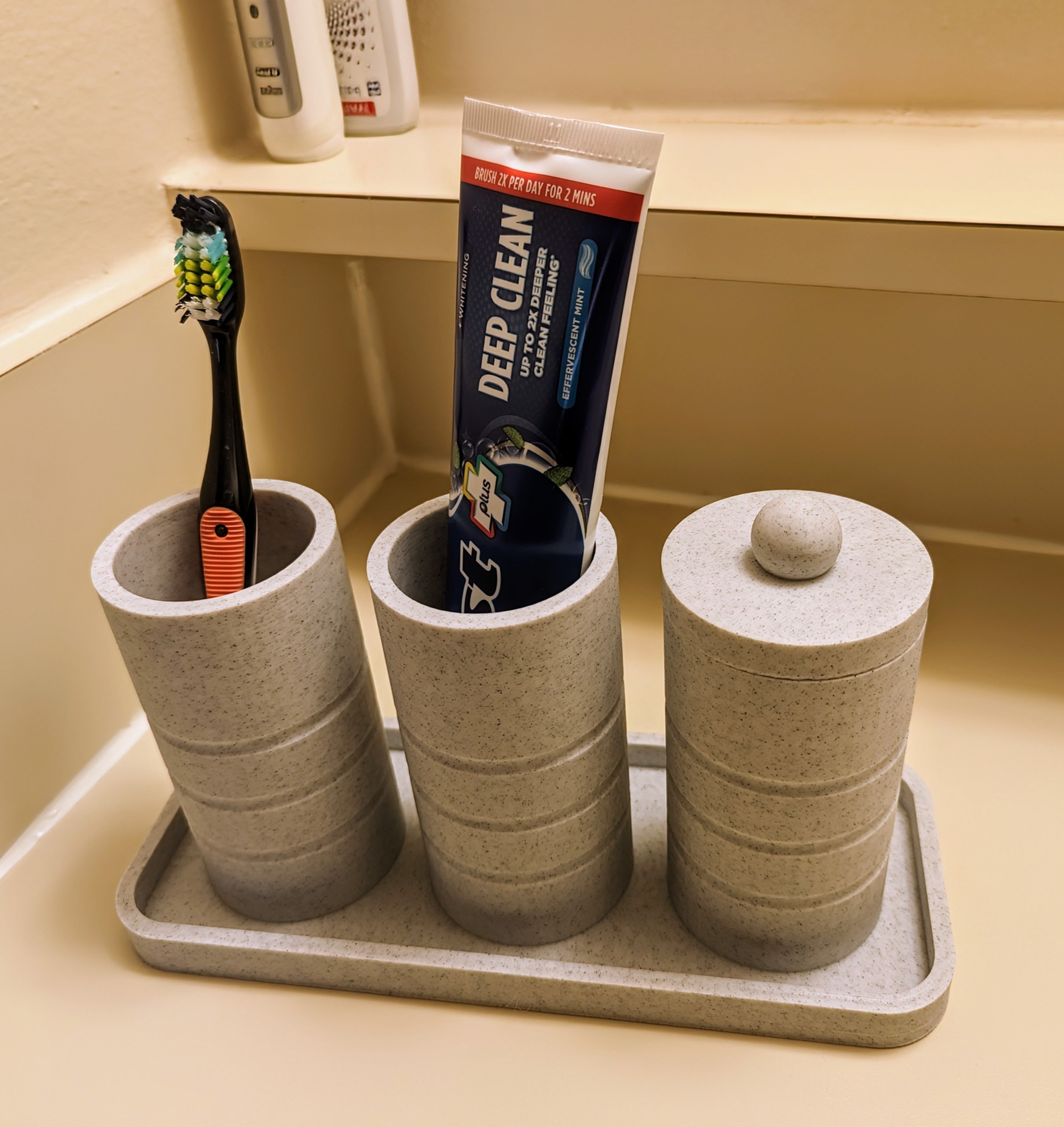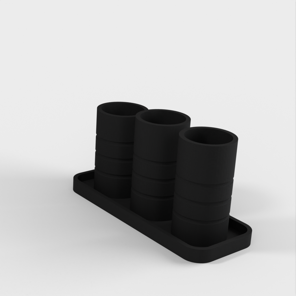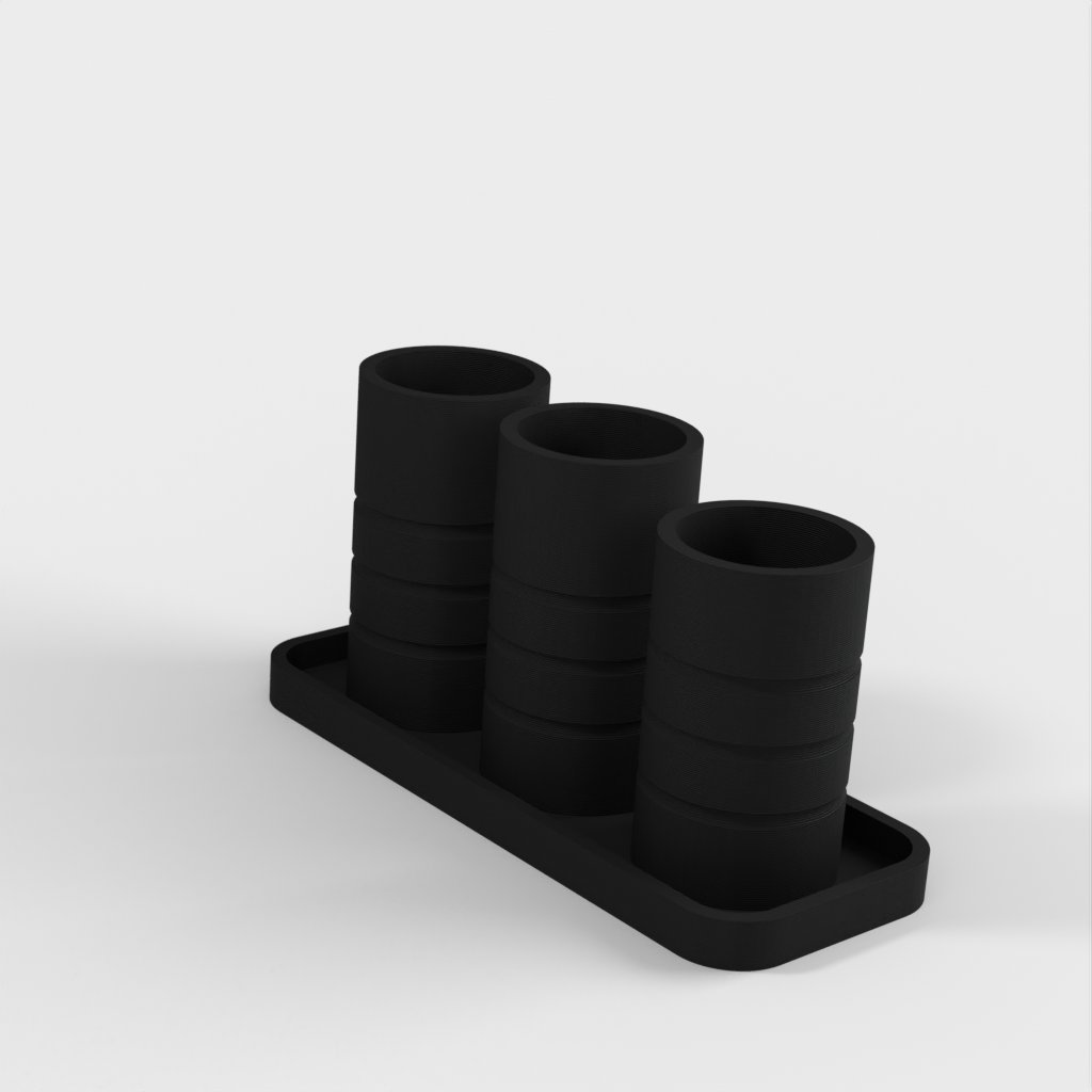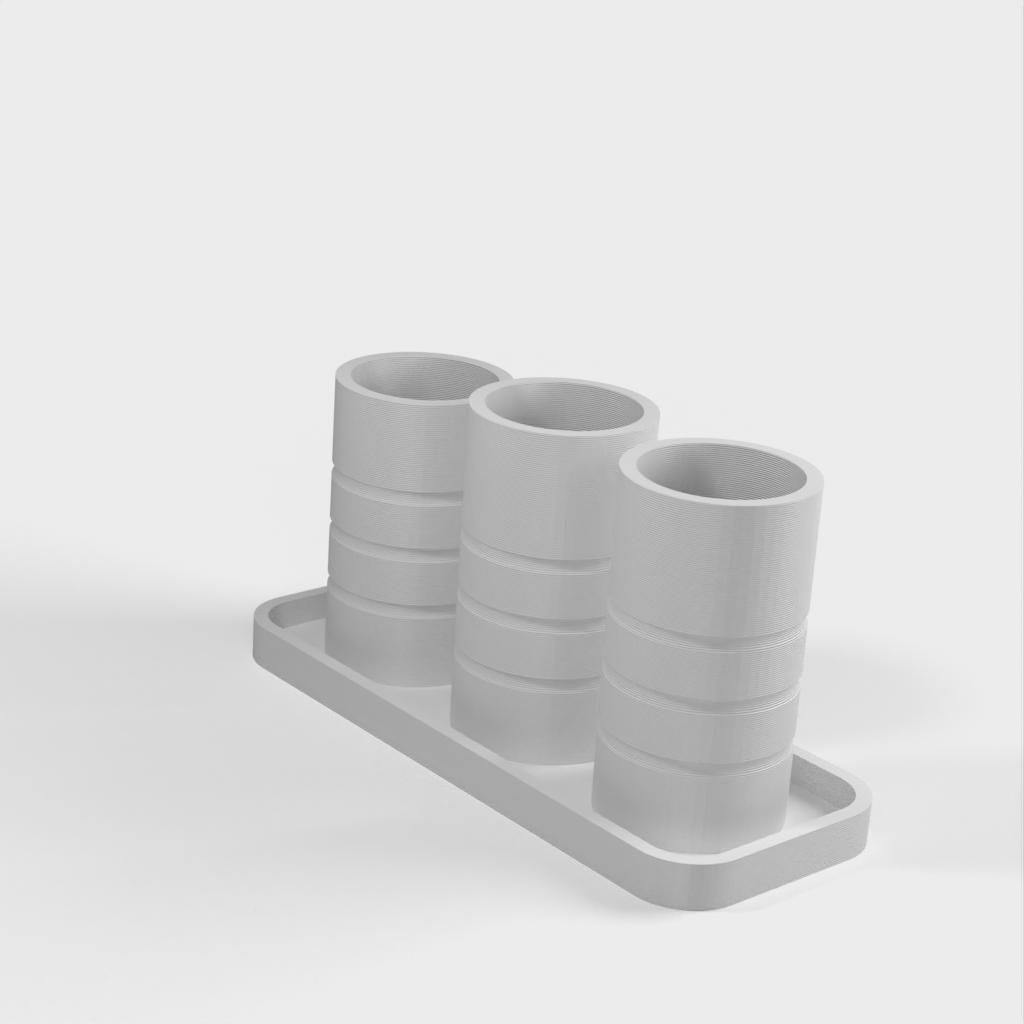 En enkel badrumsarrangör med två primära hållare för tandborstar och en tredje för q-tips eller andra föremål. Hjälp till att hålla ditt badrum snyggt och organiserat.