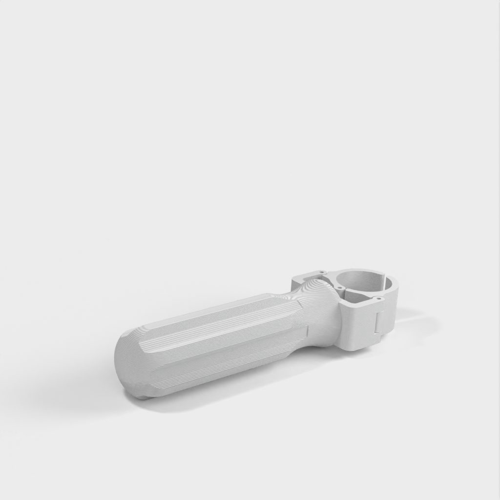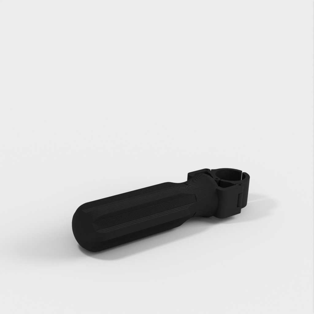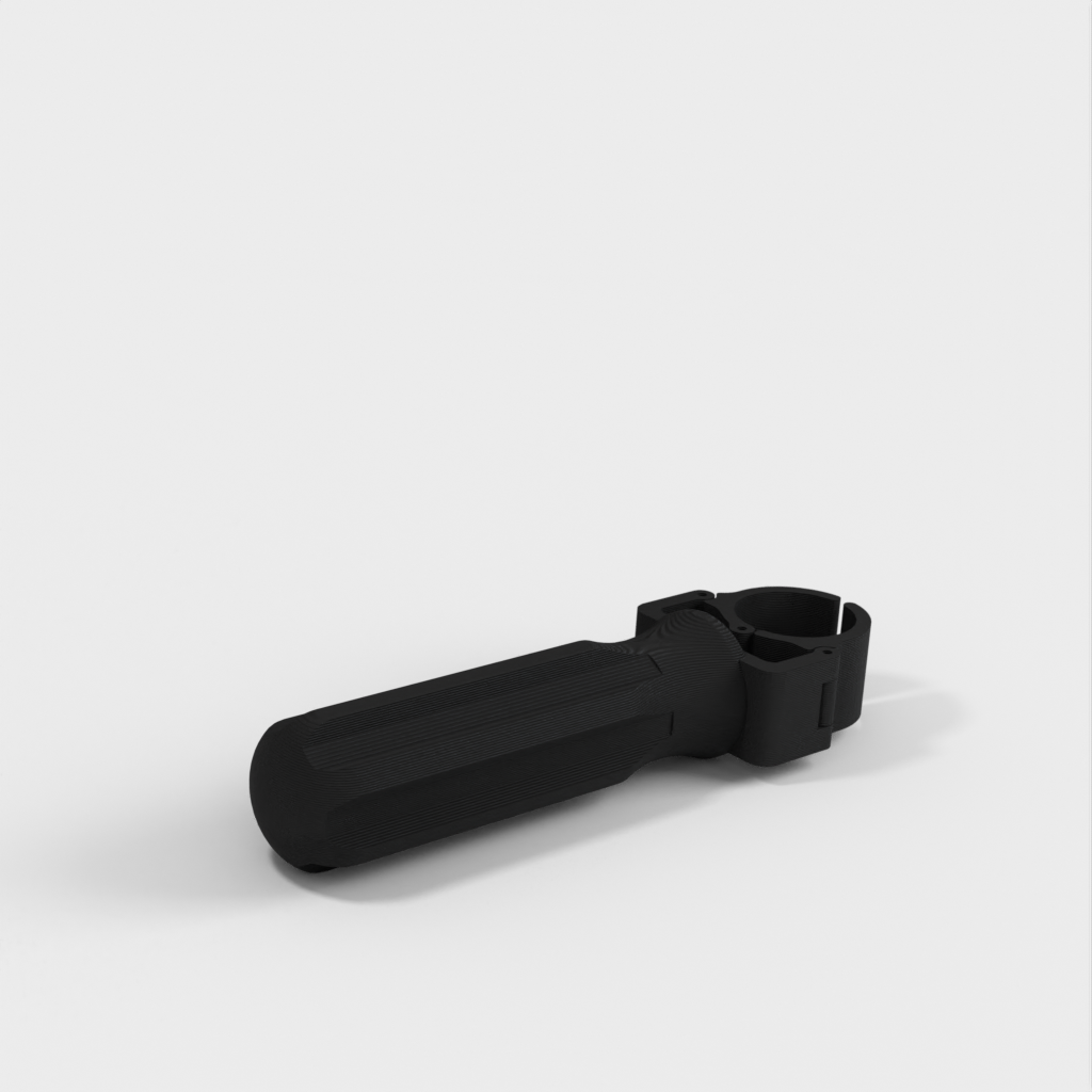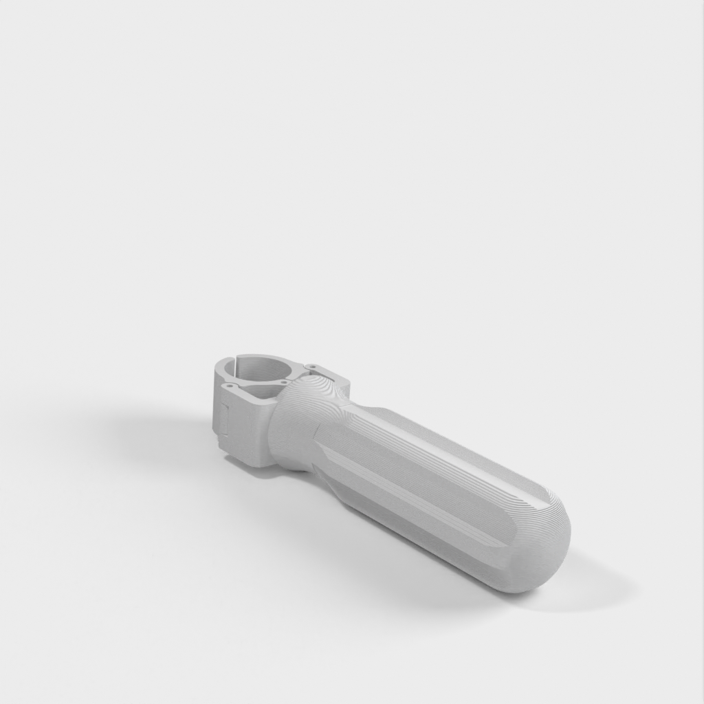 Detta tillgänglighetsgrepp för kvastskaft är designat för personer som har svårt att greppa och använda en kvast med båda händerna. Det gör att ena handen kan greppa borsthandtaget medan den andra greppar denna justerbara förlängning vinkelrätt mot handtaget, vilket gör svepande rörelser lättare för personer med rörelse- eller flexibilitetsproblem.