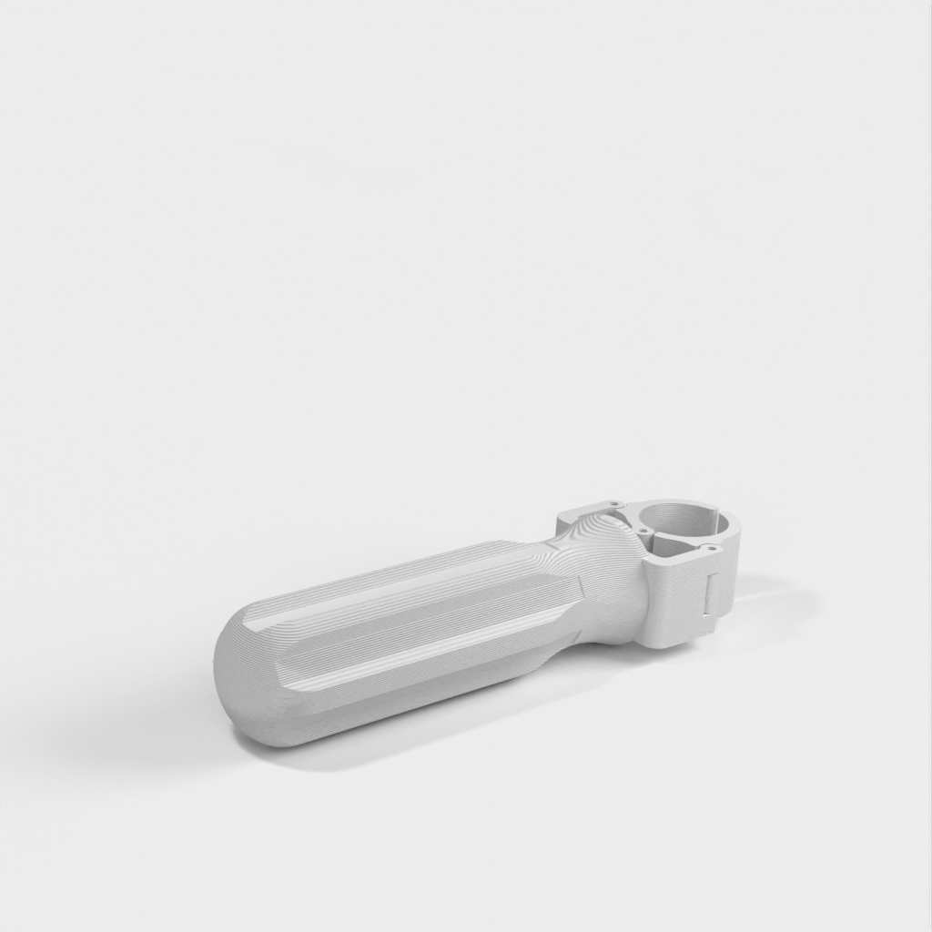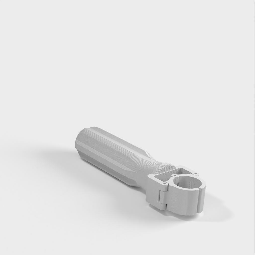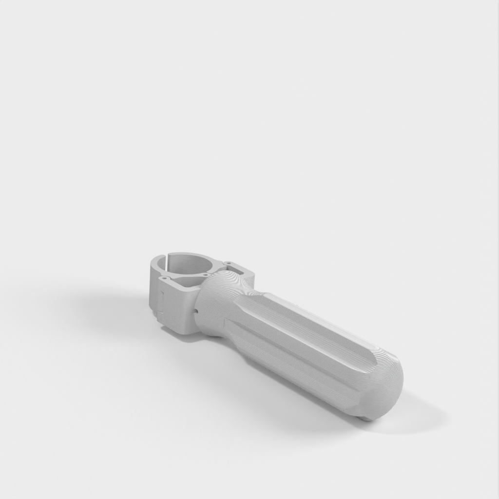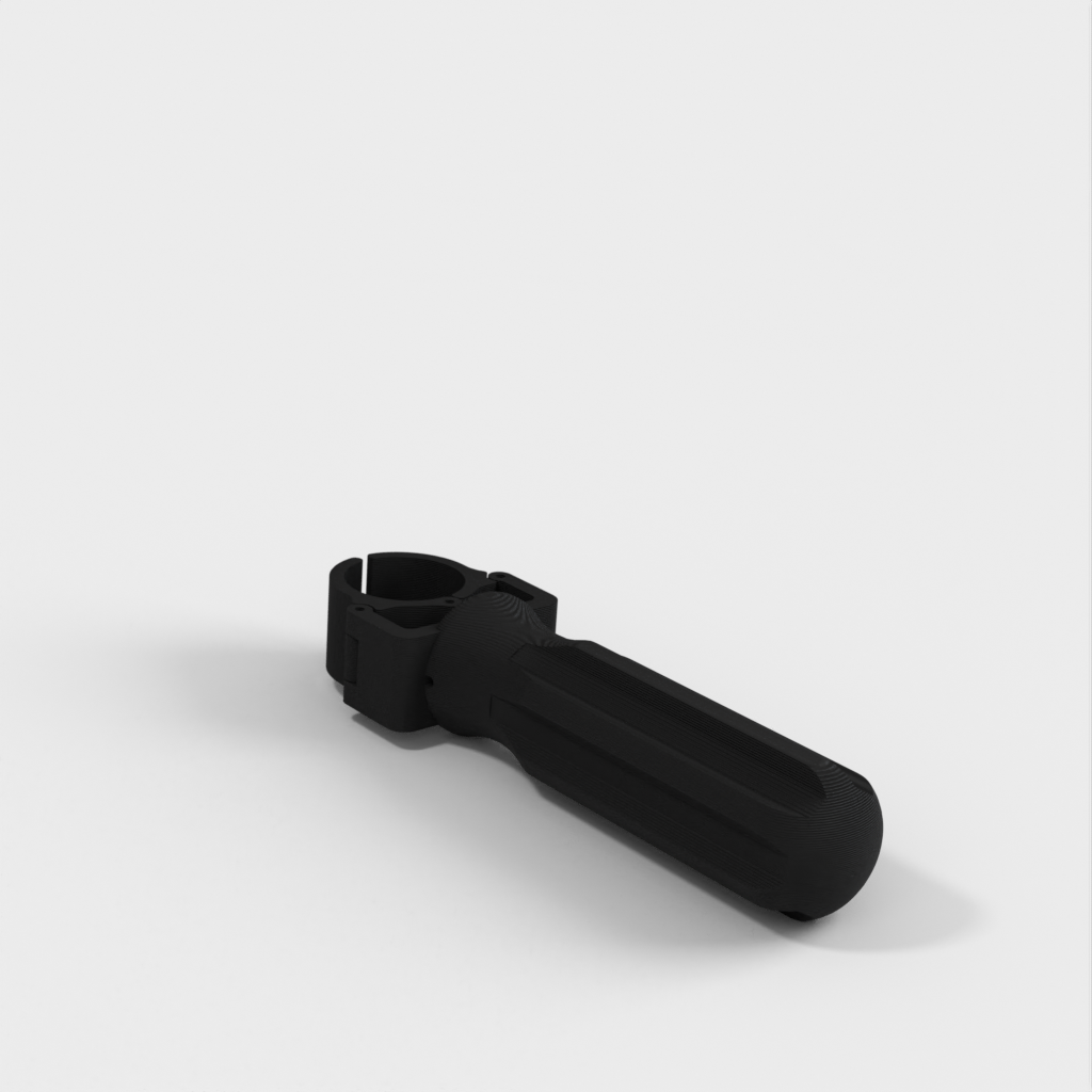 Detta tillgänglighetsgrepp för kvastskaft är designat för personer som har svårt att greppa och använda en kvast med båda händerna. Det gör att ena handen kan greppa borsthandtaget medan den andra greppar denna justerbara förlängning vinkelrätt mot handtaget, vilket gör svepande rörelser lättare för personer med rörelse- eller flexibilitetsproblem.