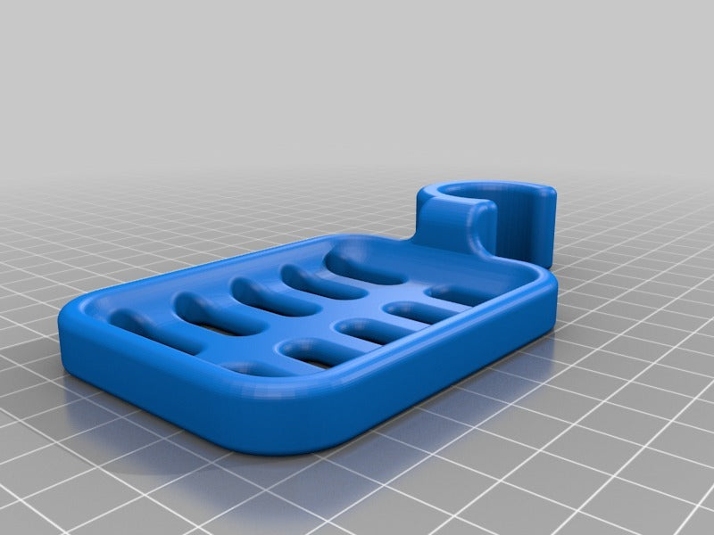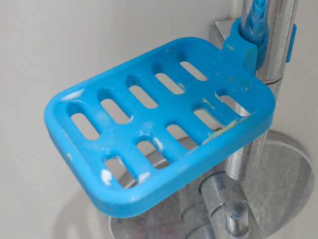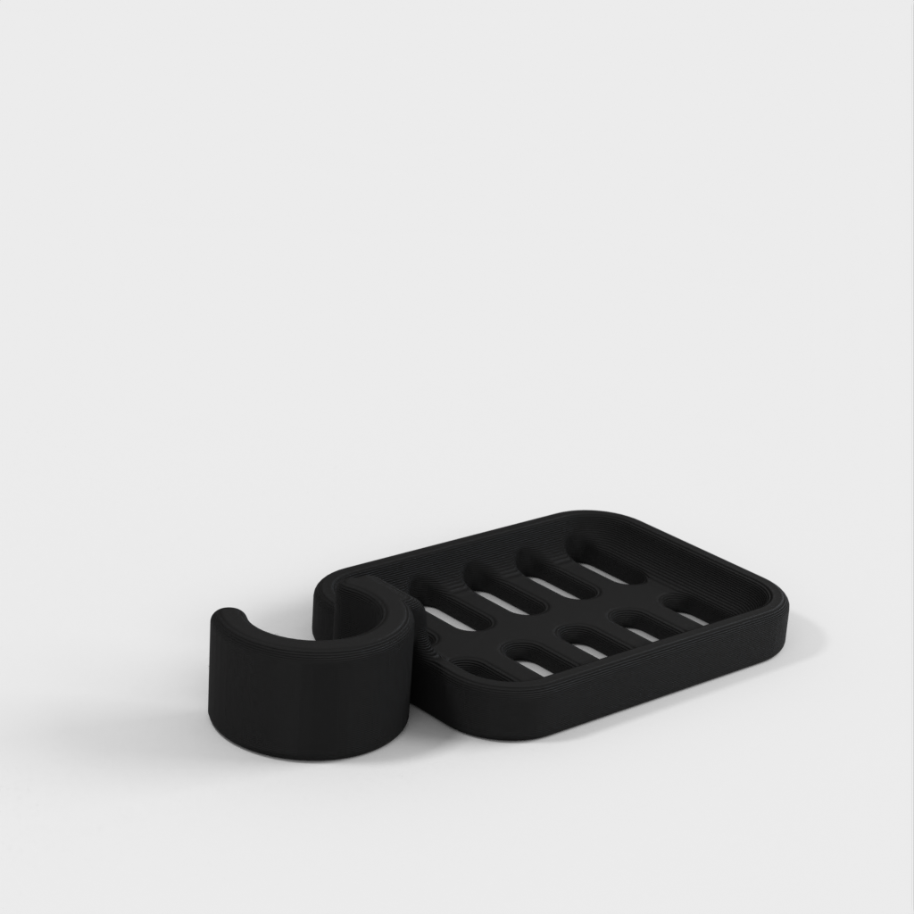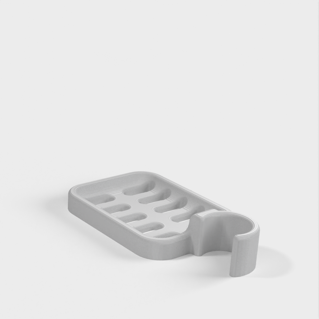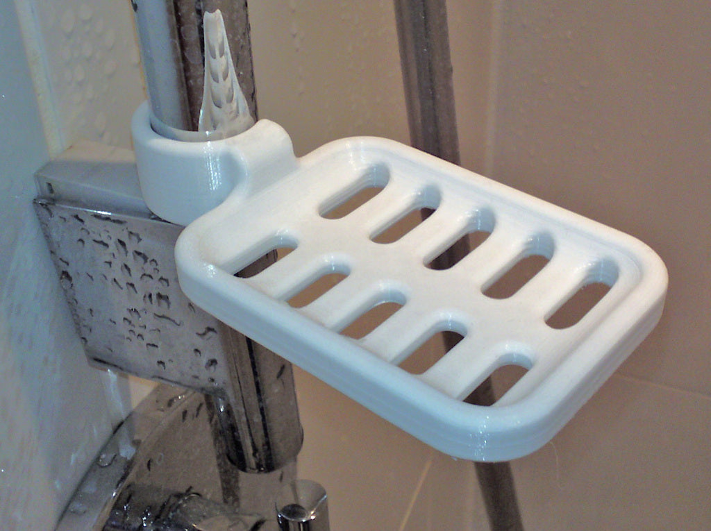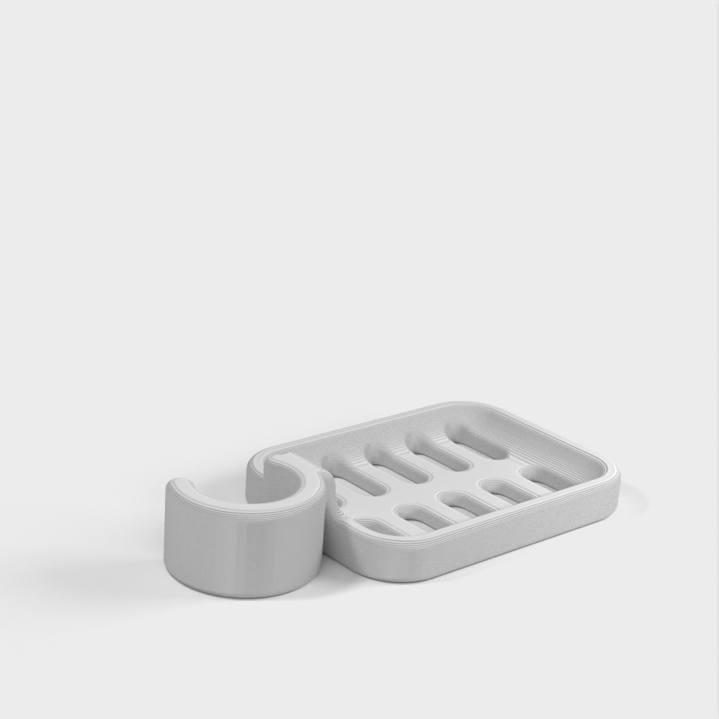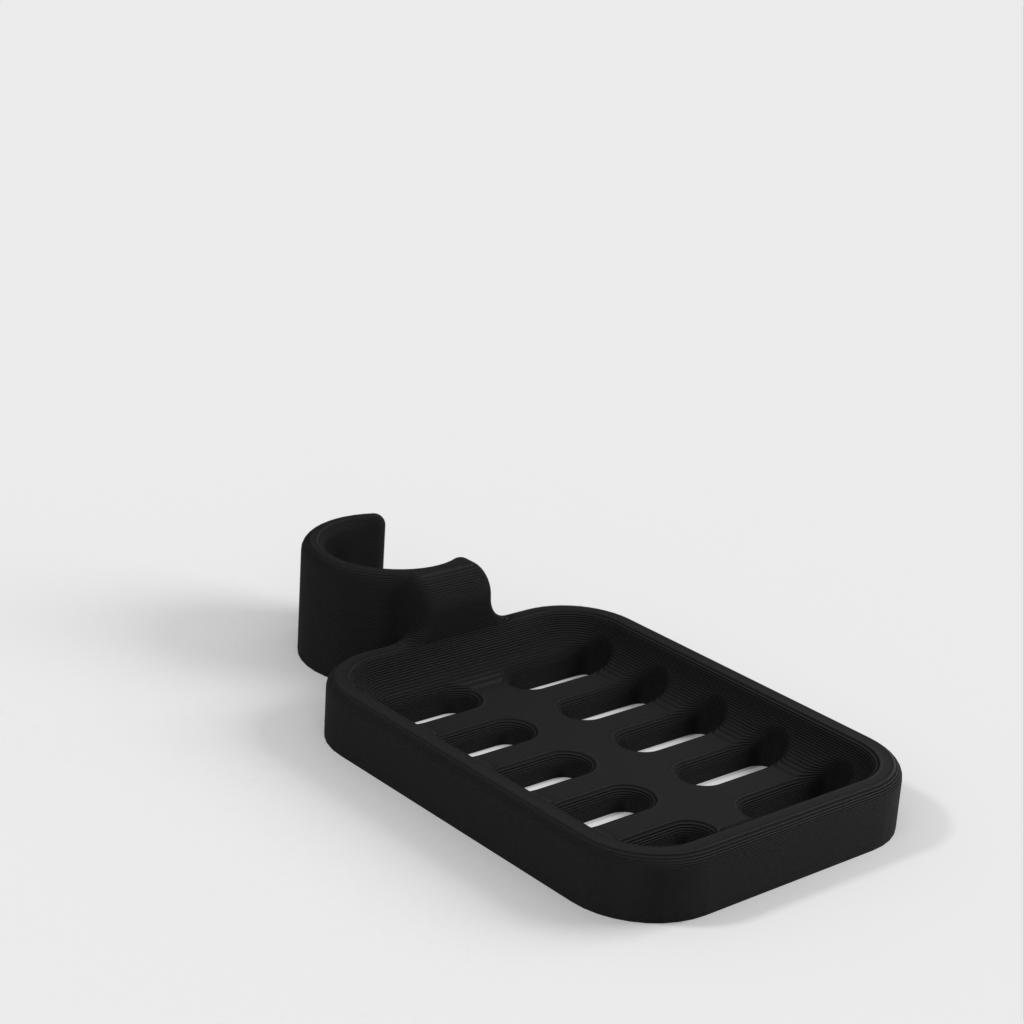 Duschtvålhållare utformad för att klämmas fast på duschstången. Tvålhållaren är speciellt designad för att passa en rund stång med en diameter på 21,9 mm. Kom ihåg att tvålhållaren är lite mindre i storleken. Det rekommenderas inte att använda PLA om möjligt eftersom kroken riskerar att gå sönder efter ett tag, speciellt i duschmiljö. ABS-plast rekommenderas som ett mer hållbart material för denna produkt.