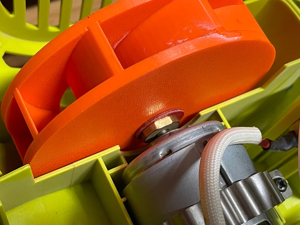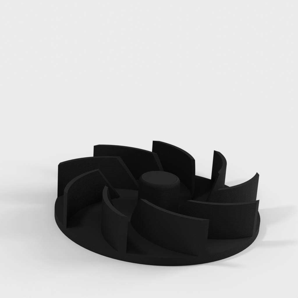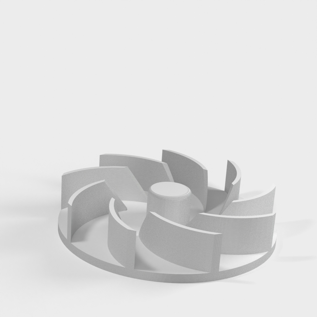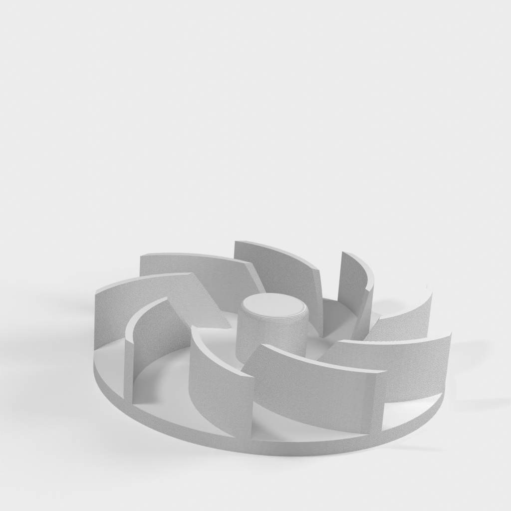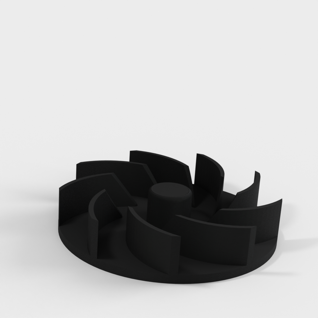 Ersättningsrotor till Ryobi RBL1802 lövblåsare. Den tvådelade designen gör det enkelt att byta ut en trasig rotor och säkerställer att ditt verktyg fungerar optimalt igen. För att montera på motoraxeln rekommenderas det att använda lite teflontejp och en fiberbricka för att säkerställa korrekt avstånd från motorn och säkerställa en tät passform.