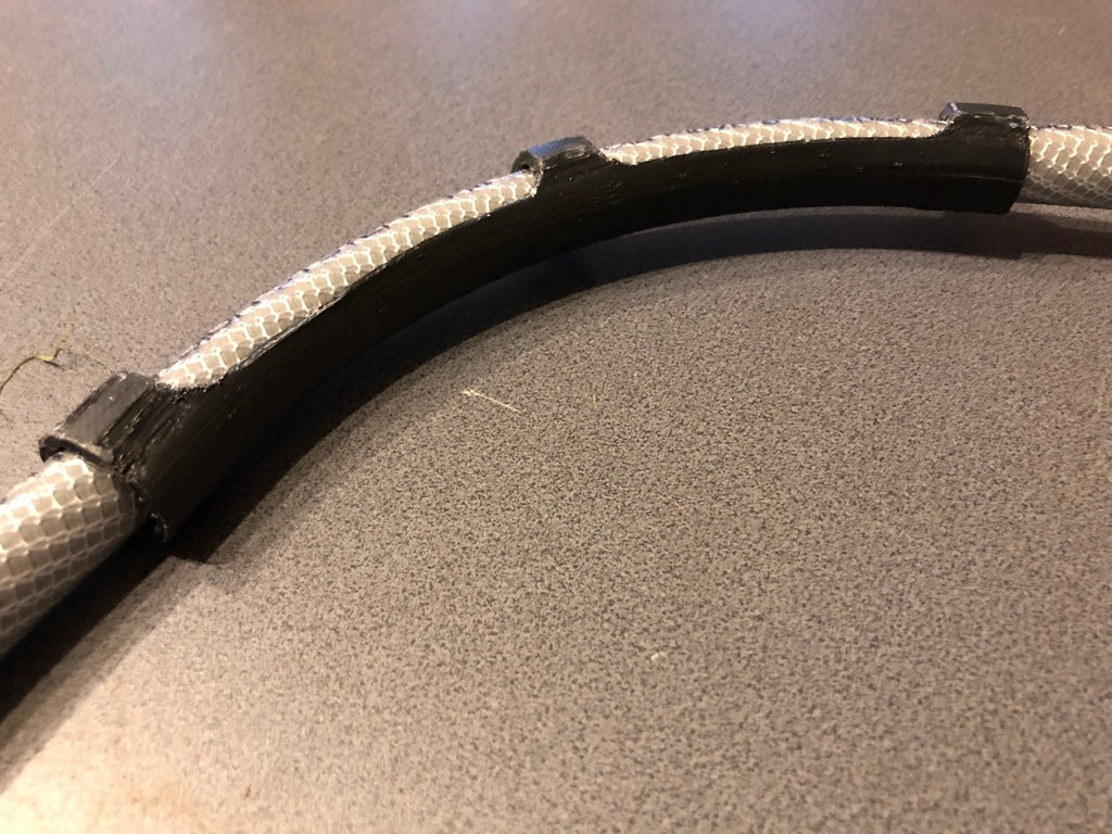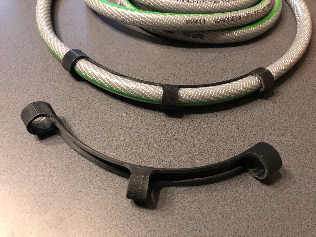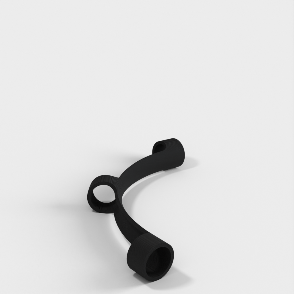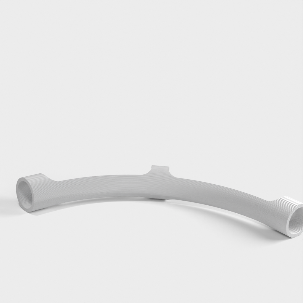 Detta är ett böjskydd för trädgårdsslangar som jag skapat för att lösa problemet med för mycket böjning på slangar som ligger utan tryck. Denna böj minskar avsevärt både vattentrycket och slangens livslängd. Med denna lösning måste slangen tryckas genom de tre hålen med en diameter på 20 mm. Detta bör också bidra till att förlänga slangens livslängd.