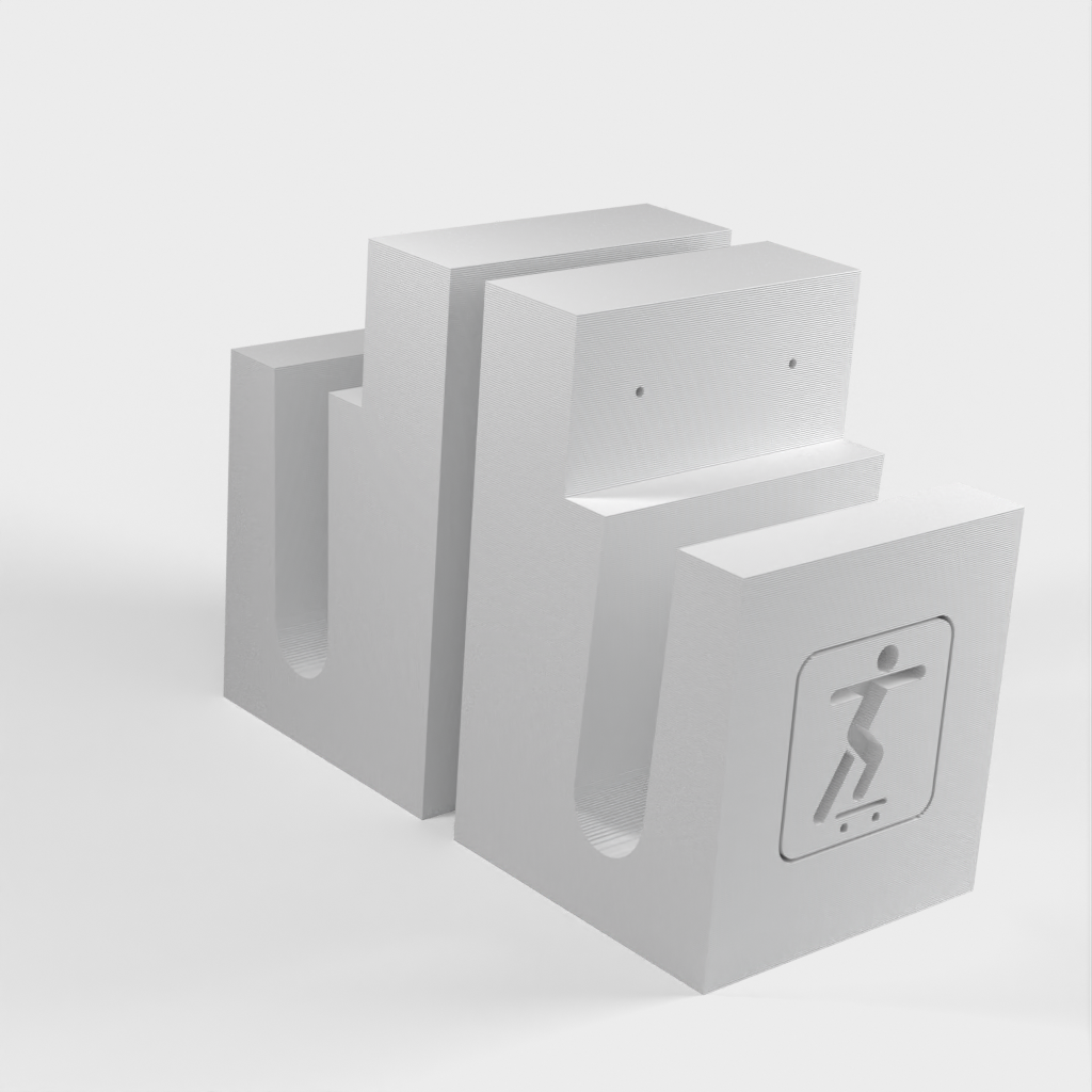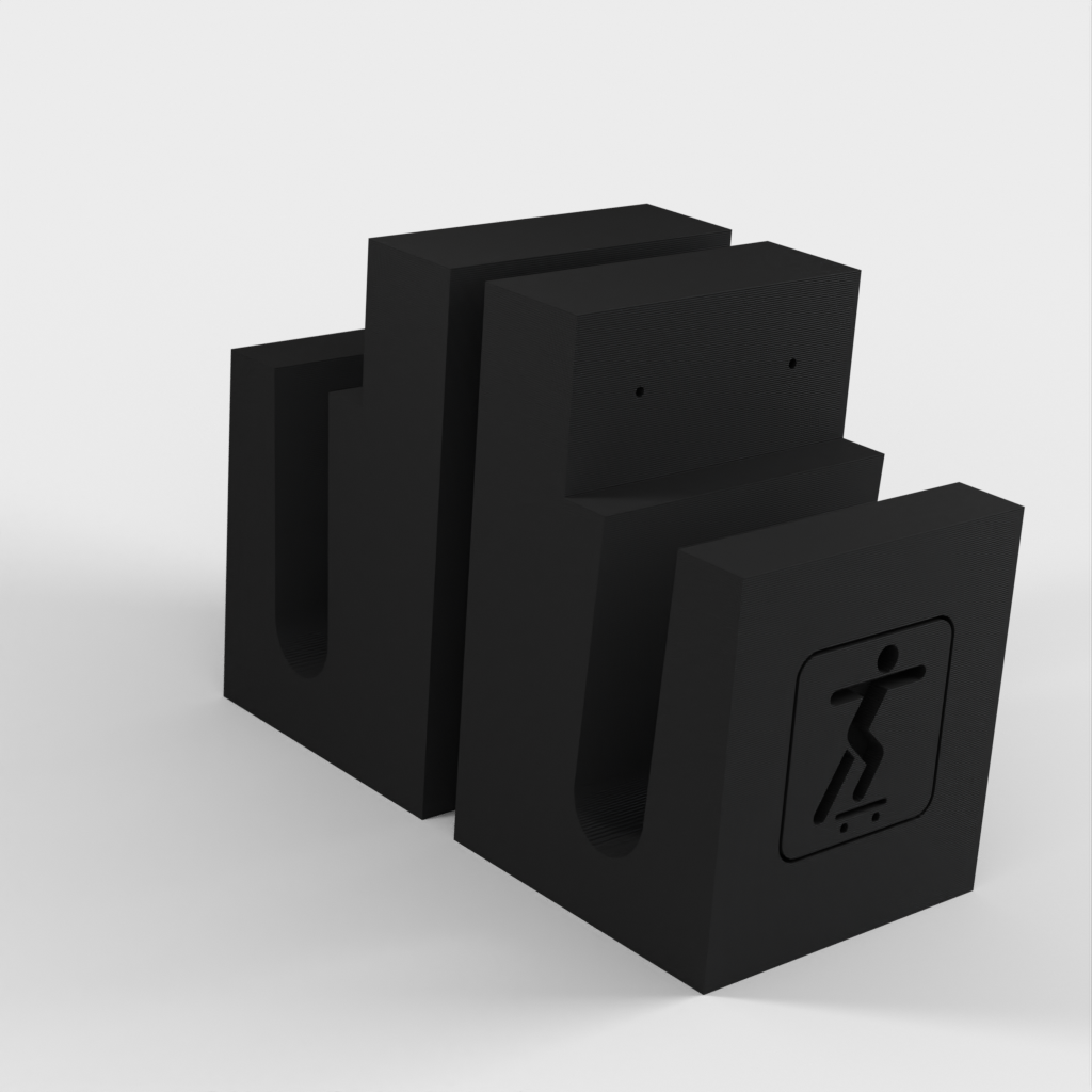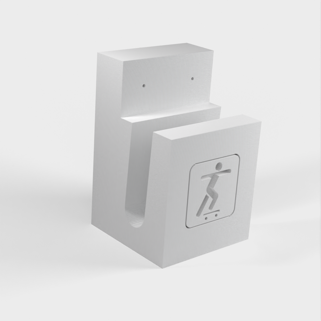 Vägghållare för skateboard med två skruvhål för att göra din skridskouppställning mer organiserad och spara utrymme. Den är designad med en öppning på 24 mm för att passa de flesta skateboardbrädor. Lätt att montera på väggen, vilket gör den idealisk för både vanliga skateboards och elektriska skateboards.
