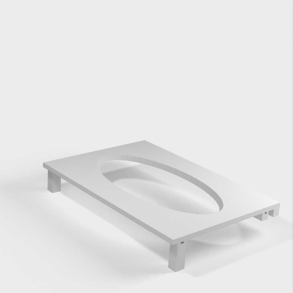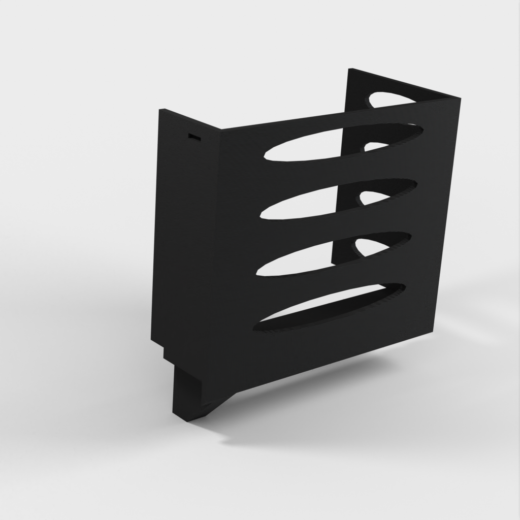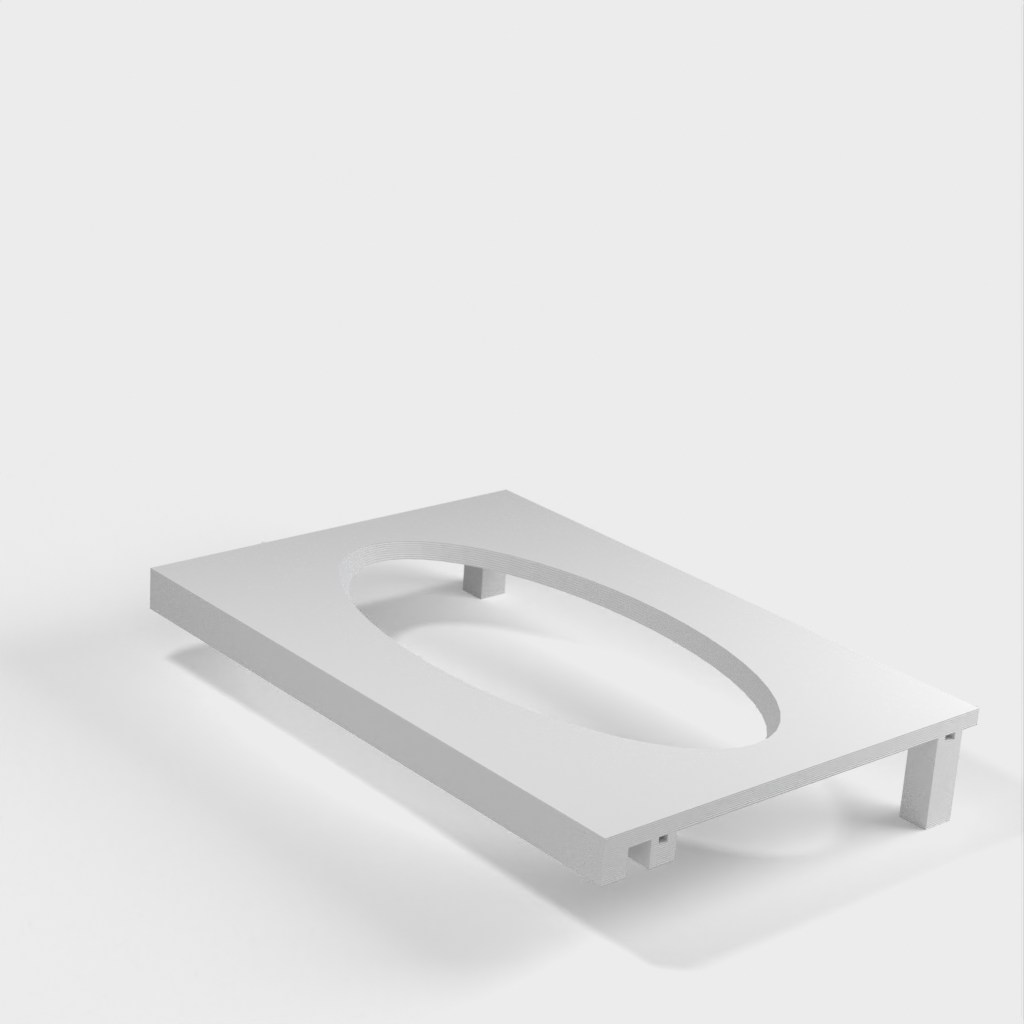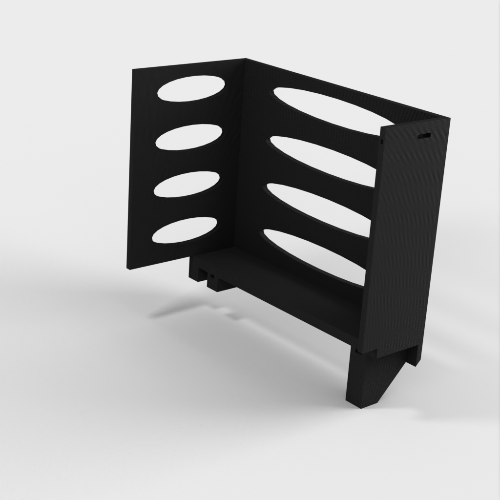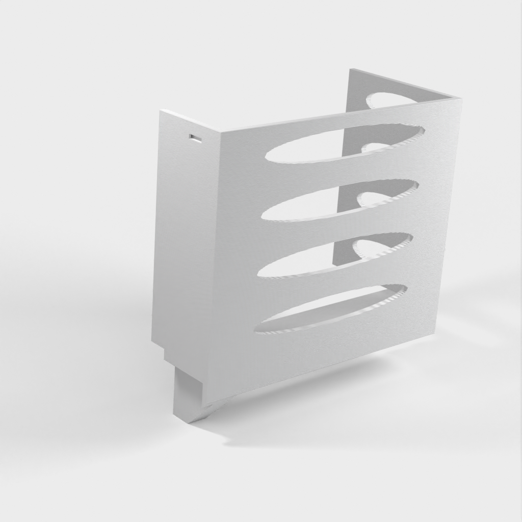 Denna pappershandduksdispenser kan monteras på ett Ikea Grundtal hyllfäste. Ta bara bort facket och placera de utskrivna föremålen på konsolerna. Produkten har mindre öppningar i botten som kan användas för att fästa ihop föremålen med en tunn tråd. Det finns även öppningar på baksidan för montering. Innermåtten är 130x254 mm.