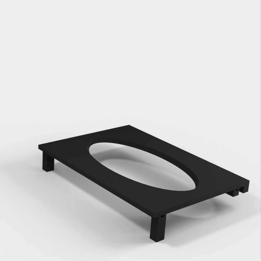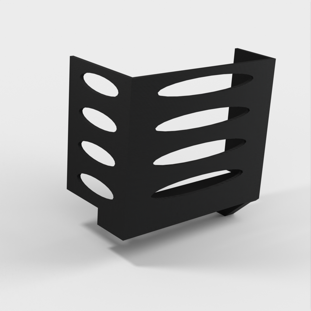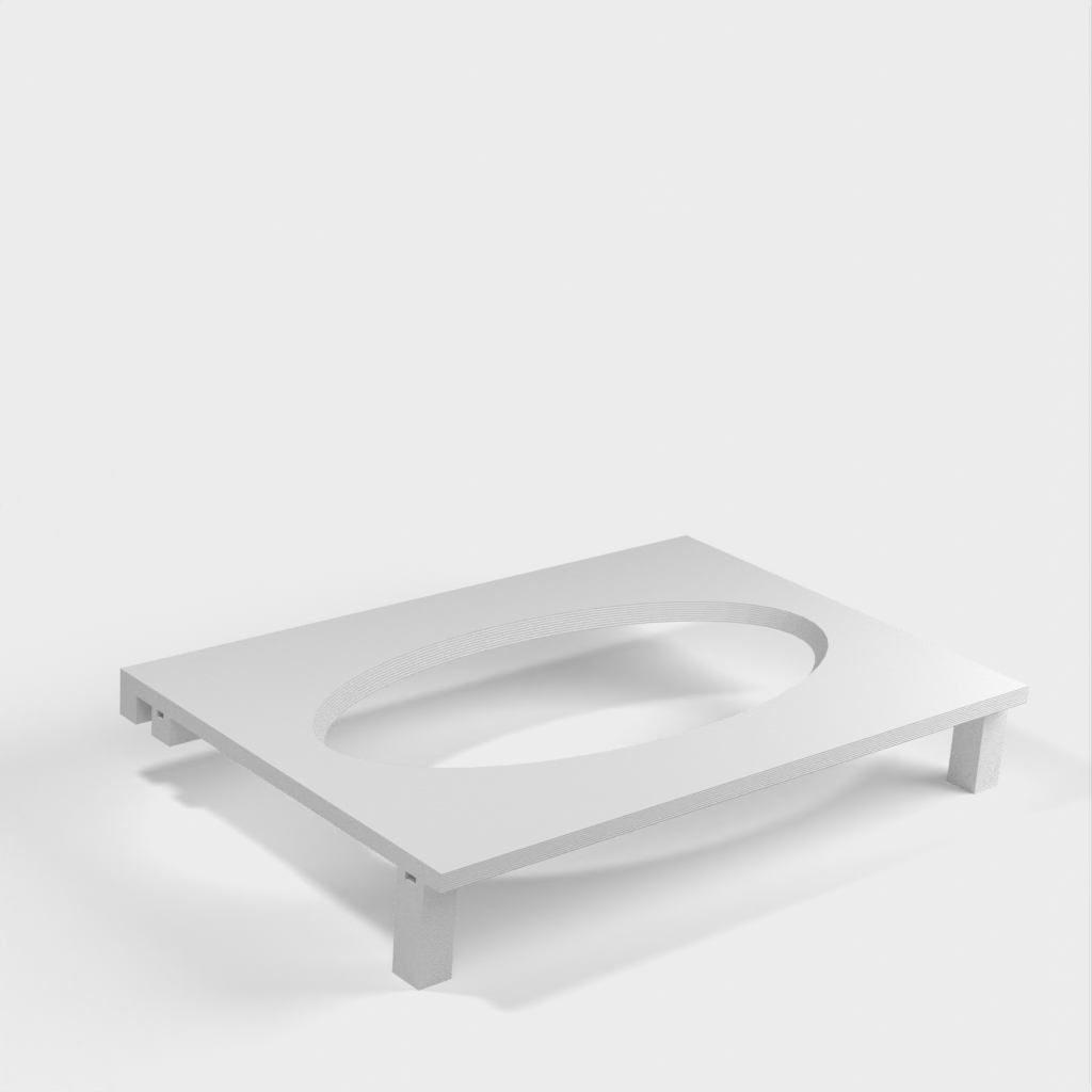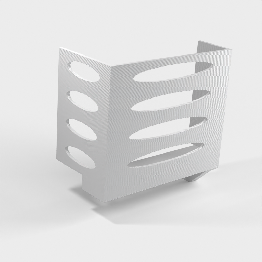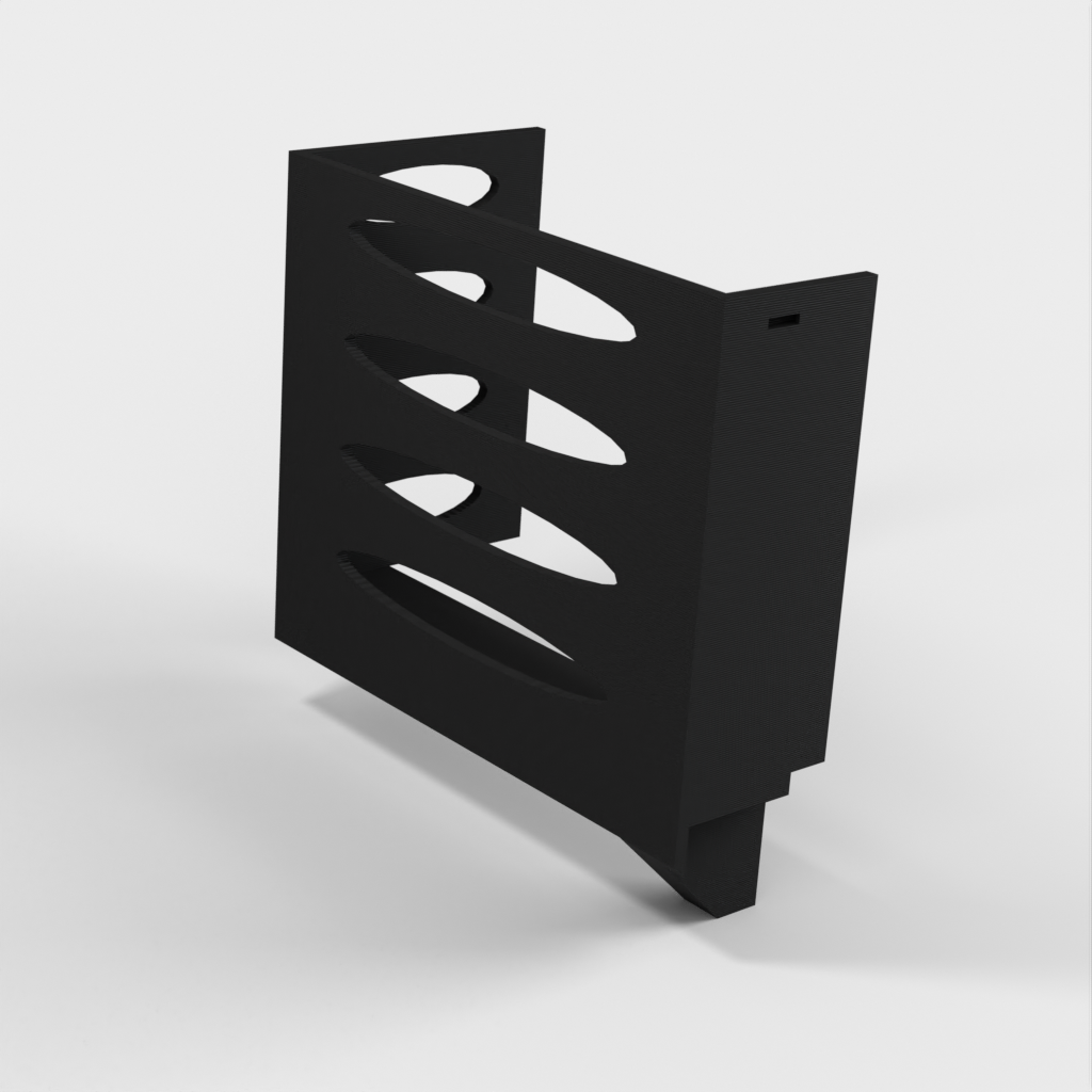 Denna pappershandduksdispenser kan monteras på ett Ikea Grundtal hyllfäste. Ta bara bort facket och placera de utskrivna föremålen på konsolerna. Produkten har mindre öppningar i botten som kan användas för att fästa ihop föremålen med en tunn tråd. Det finns även öppningar på baksidan för montering. Innermåtten är 130x254 mm.