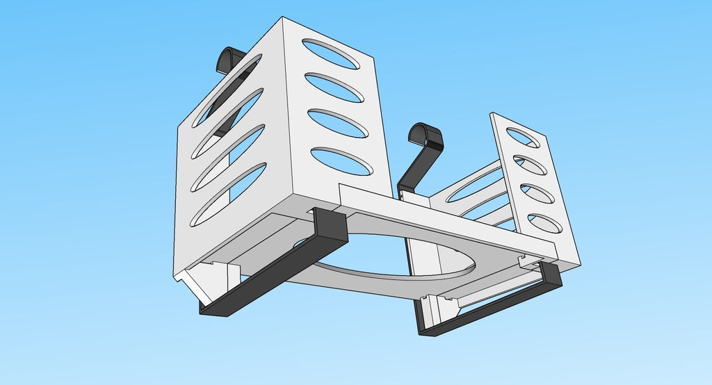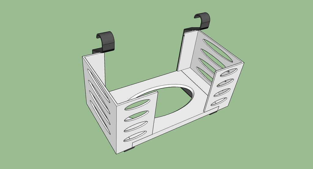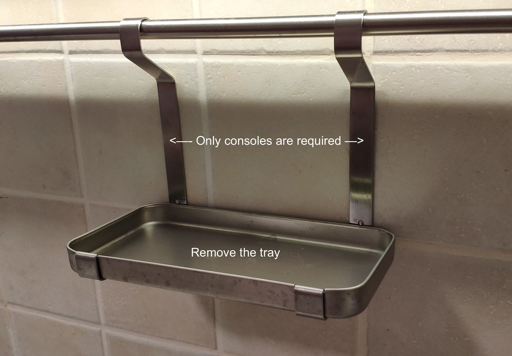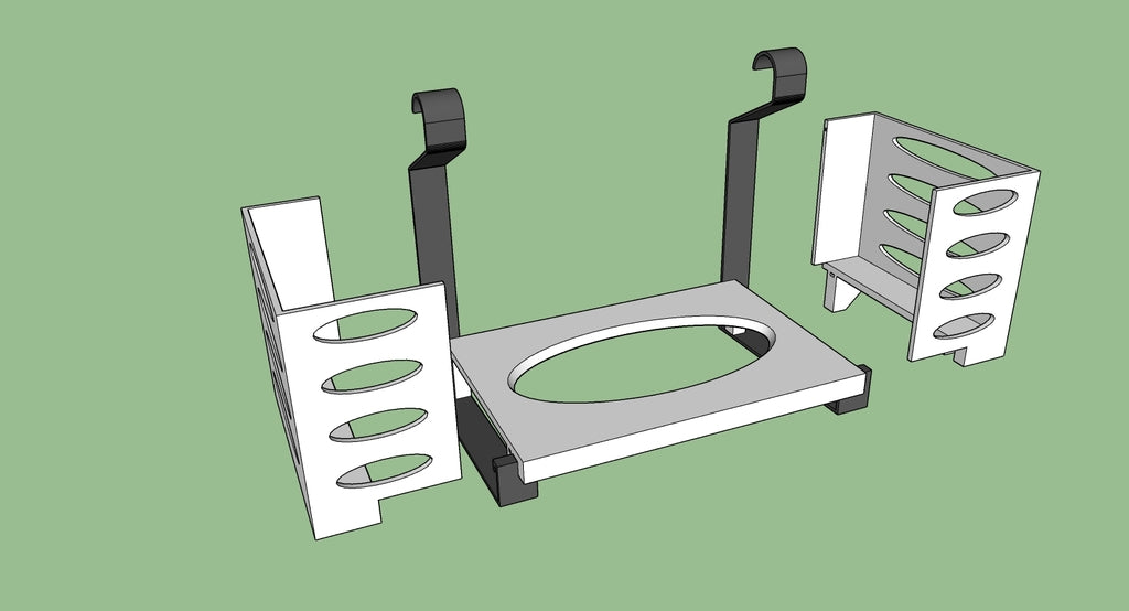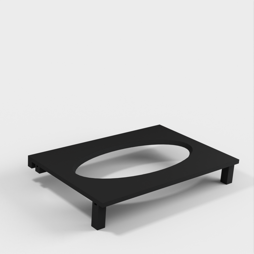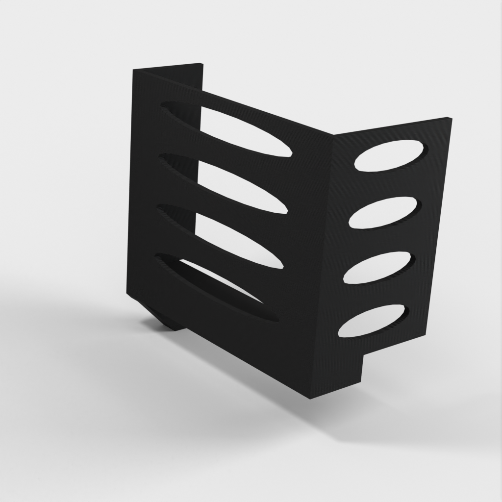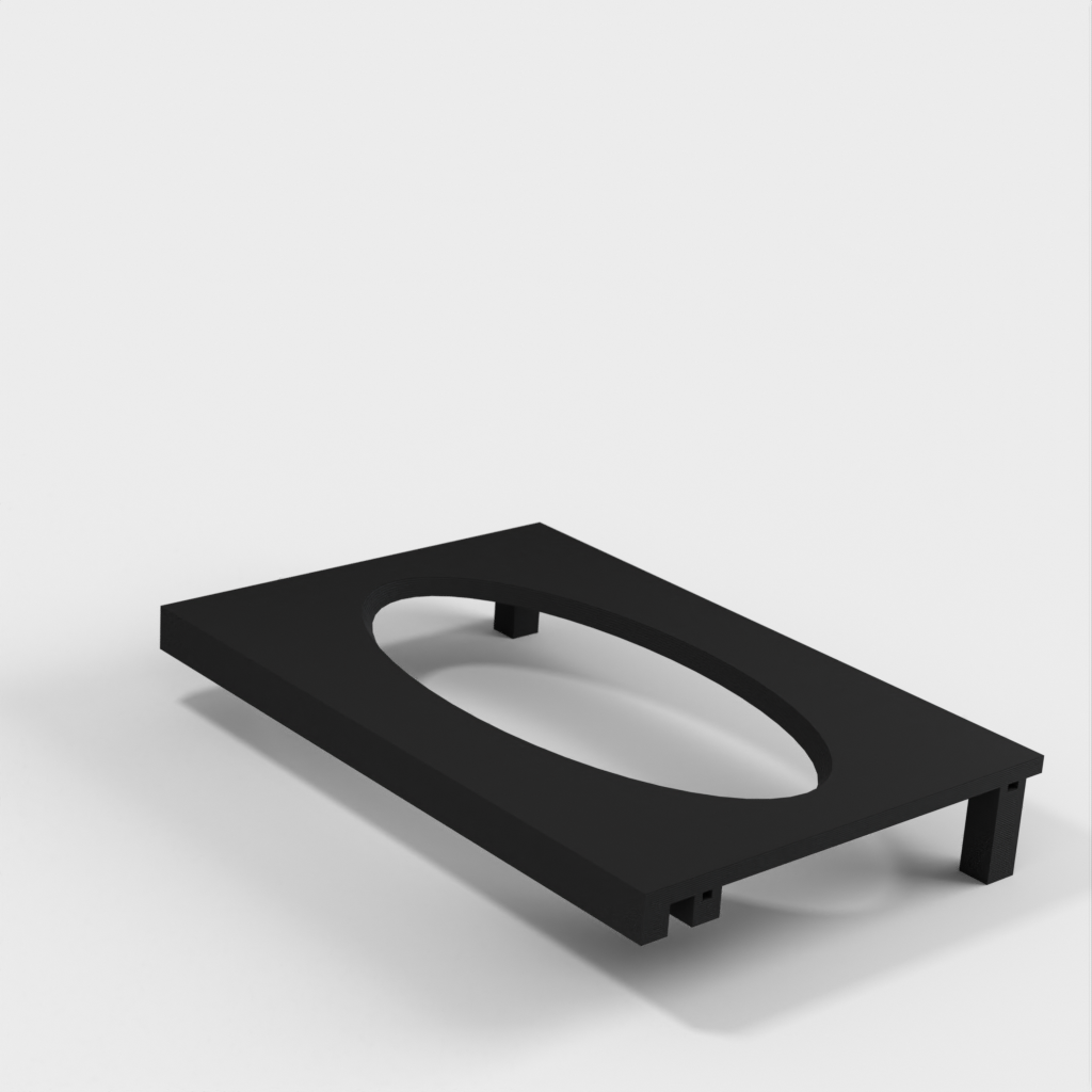 Denna pappershandduksdispenser kan monteras på ett Ikea Grundtal hyllfäste. Ta bara bort facket och placera de utskrivna föremålen på konsolerna. Produkten har mindre öppningar i botten som kan användas för att fästa ihop föremålen med en tunn tråd. Det finns även öppningar på baksidan för montering. Innermåtten är 130x254 mm.