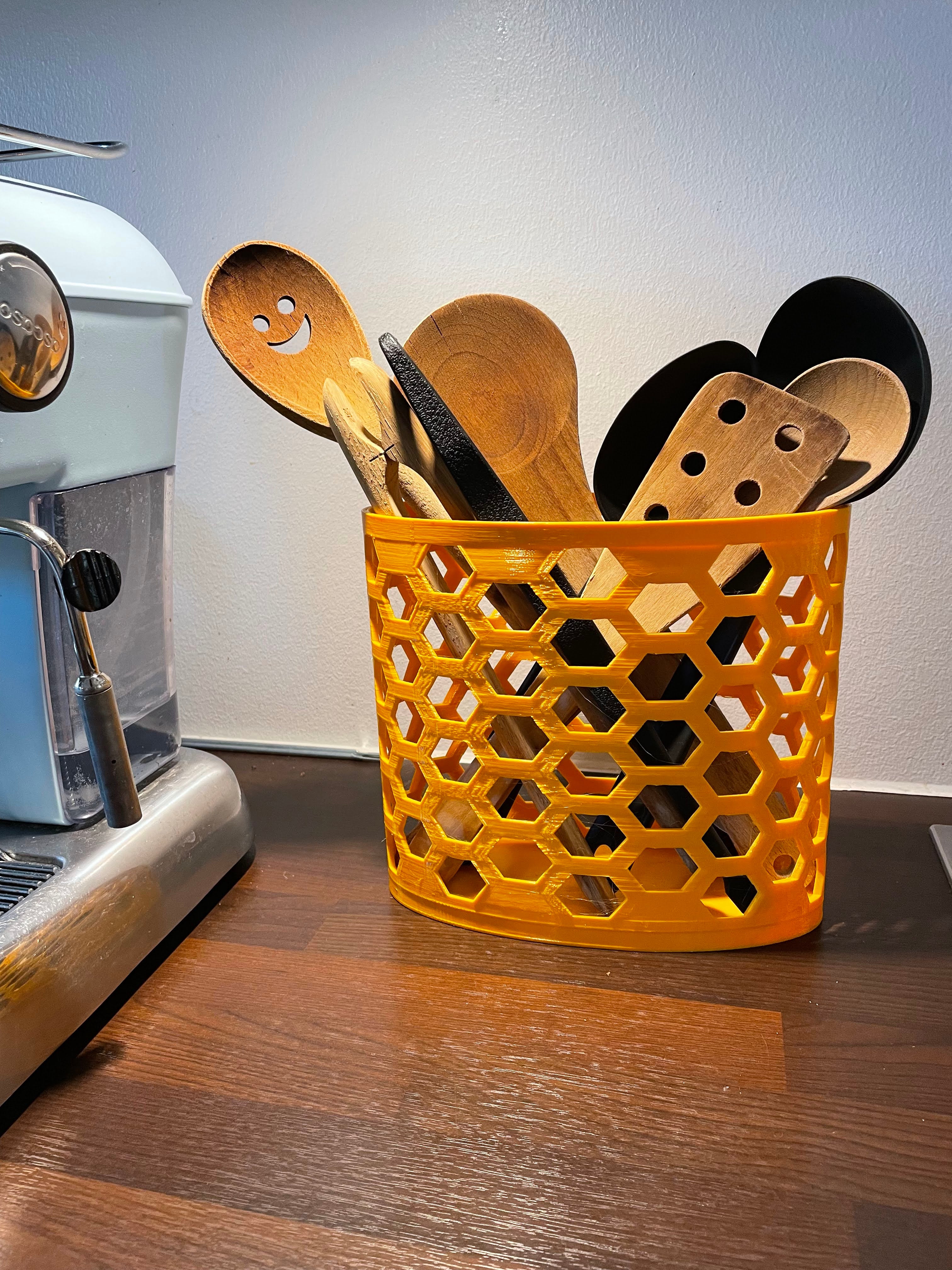 Detta är en smal köksredskapshållare som är perfekt för att förvara dina nödvändiga köksredskap. Den kompakta storleken gör den idealisk för alla kök och den gula melonfärgen kommer att lägga till lite färg. Denna verktygshållare är 200 % större på x-axeln och 80 % mindre på y-axeln jämfört med en standardmodell.