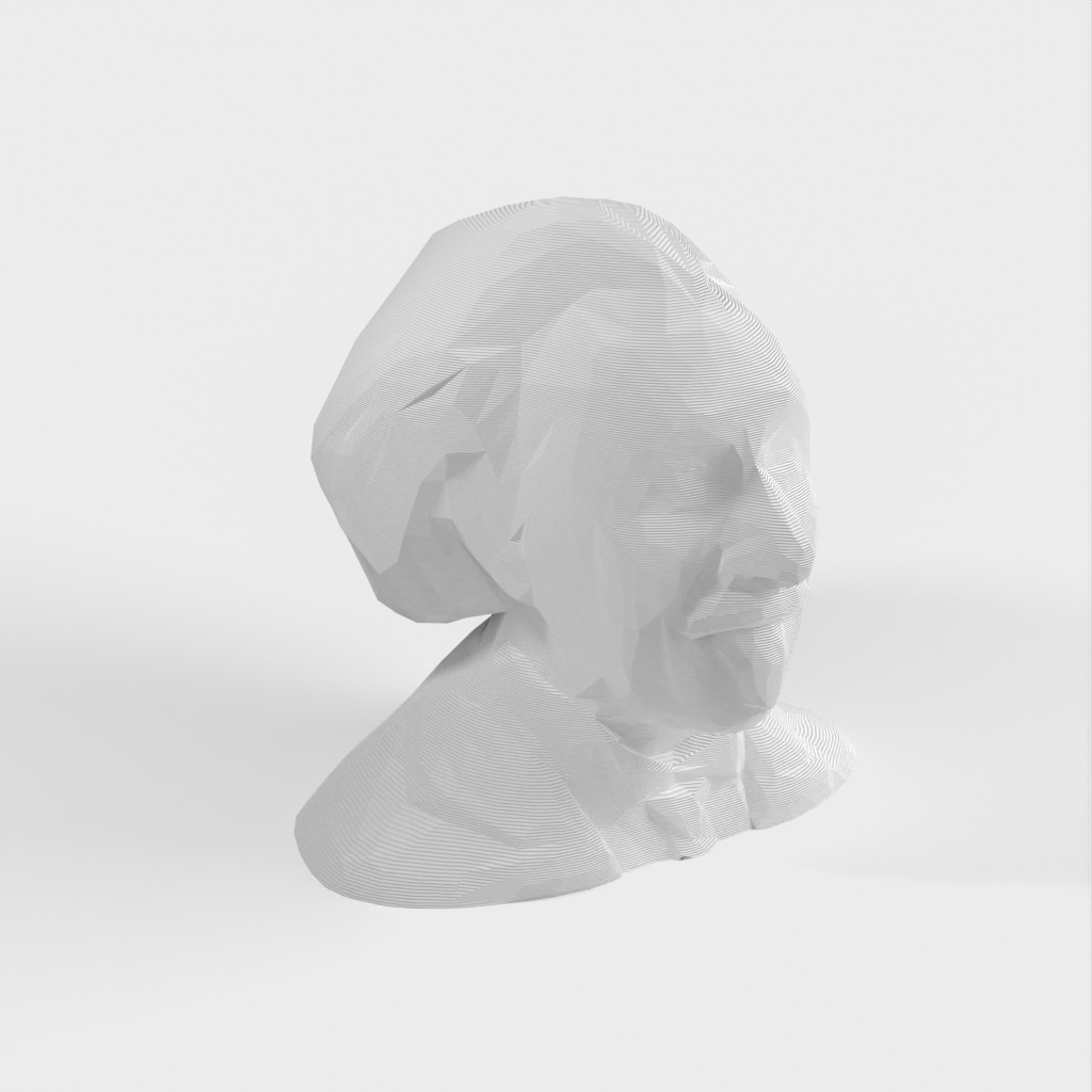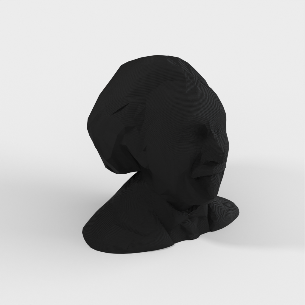 En låg-polygonal byst av Albert Einstein! Denna skulptur är ett unikt och intressant sätt att hedra detta ikoniska geni inom vetenskap, fysik och mänsklig historia. Den minimalistiska stilen lägger till en modern twist till klassisk skulptur och kommer att göra ett utmärkt samtalsstycke i alla rum eller kontor.