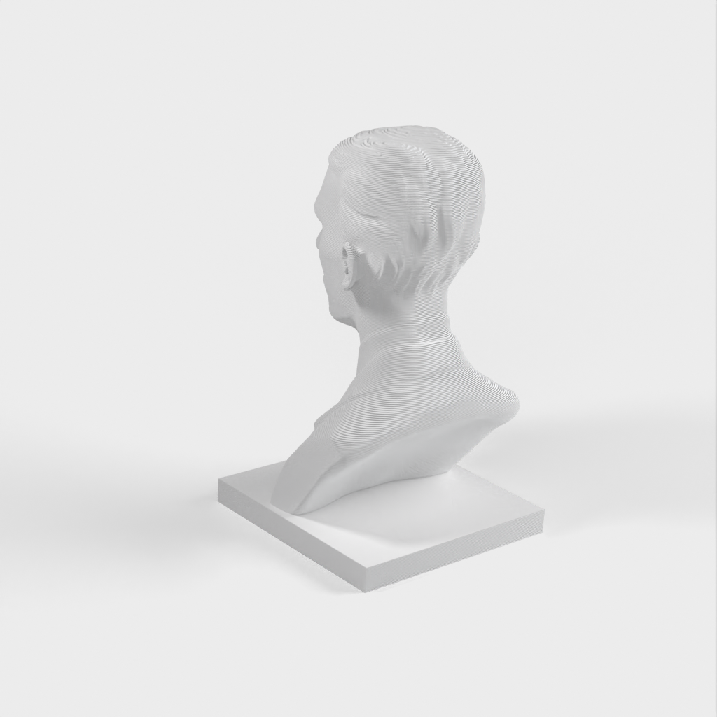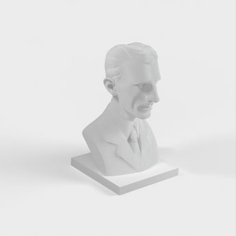 En enkel byst av Nikola Tesla med en basal sockel. Denna byst är designad för att hedra den ikoniska vetenskapsmannen och hans anmärkningsvärda bidrag till vetenskapen. Perfekt för visning och uppskattning i ditt hem, kontor eller på ditt skrivbord.
