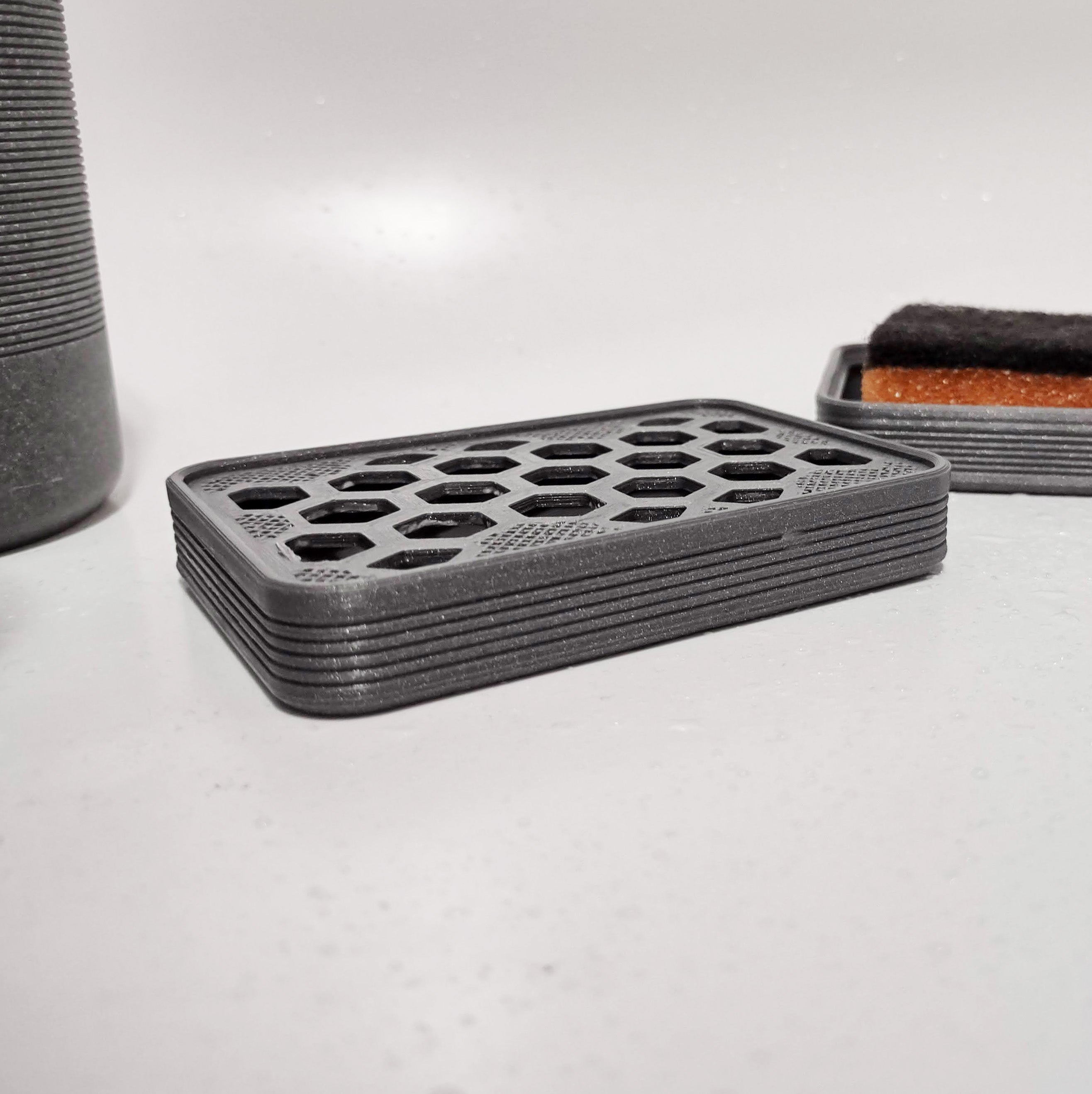 En enkel tvålkopp för att hålla din tvål säker. Denna tvålkopp kan enkelt anpassas till det valda fyllningsmönstret, vilket gör att du kan skapa en unik och personlig tvålautomat som ger ditt badrum eller kök en touch av stil.