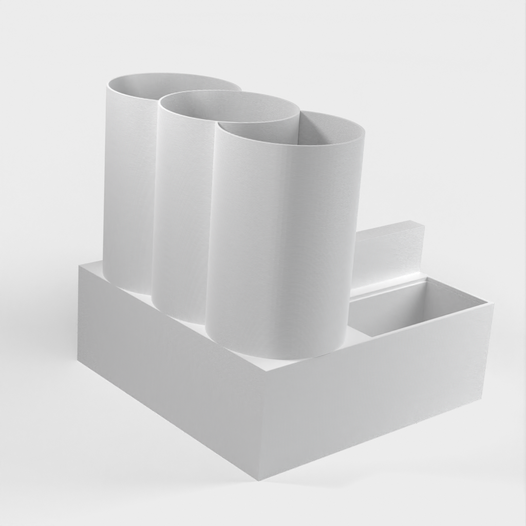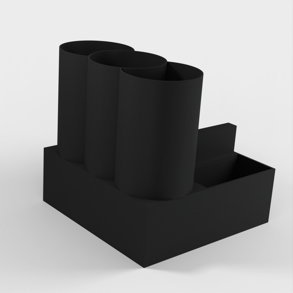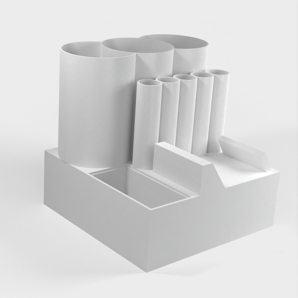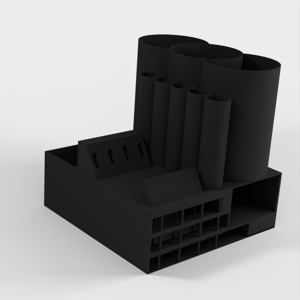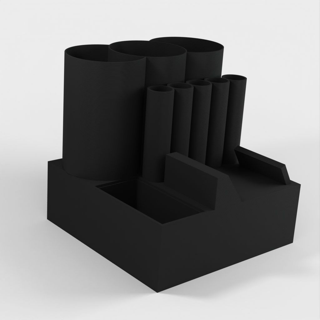 Namnskylten kan integreras och det finns flera stora och små förvaringsfack för pennor, pennor, markörer eller andra skrivbordsartiklar. Med vår skrivbordsarrangör är du garanterad en städad och välorganiserad arbetsplats.