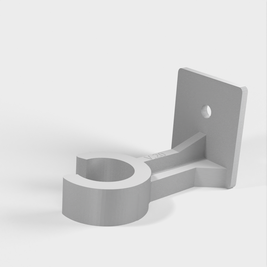 Klämma för användning med GARDENA Micro-Drip-System. Denna är designad för att monteras på väggen som en trådhållare med 4,6 mm (3/16"), för att styra och fixera fördelningsröret. Den kan fixeras med hjälp av borrhålet.