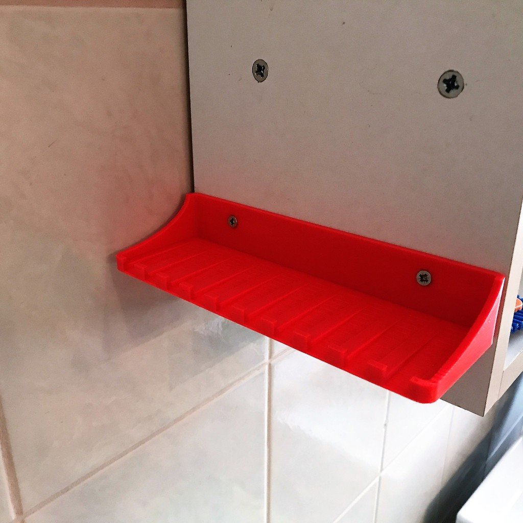En vägghängd badrumshylla som kan tryckas och monteras med skruvar. Hyllan är idealisk för förvaring av små toalettartiklar och lägger till välbehövligt extra förvaringsutrymme till alla badrum. Dess kompakta storlek gör den perfekt för små badrum.
