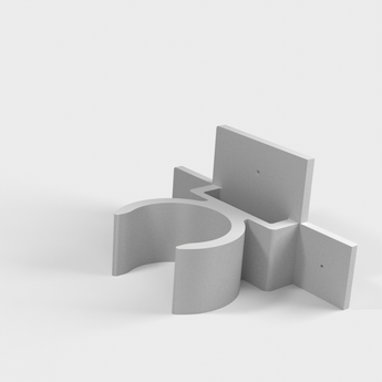Hållare för ETA Stellar dammsugarrör. Den nedre delen stöder T-formade delar av röret och rekommenderas att fästas med skruvar, eftersom den bär större delen av vikten. Den övre delen är avsedd för rör med en diameter på 32 mm, men den kan även användas för delar med en diameter på 35 mm utan problem. Denna del kan fästas antingen med skruvar eller dubbelhäftande tejp.