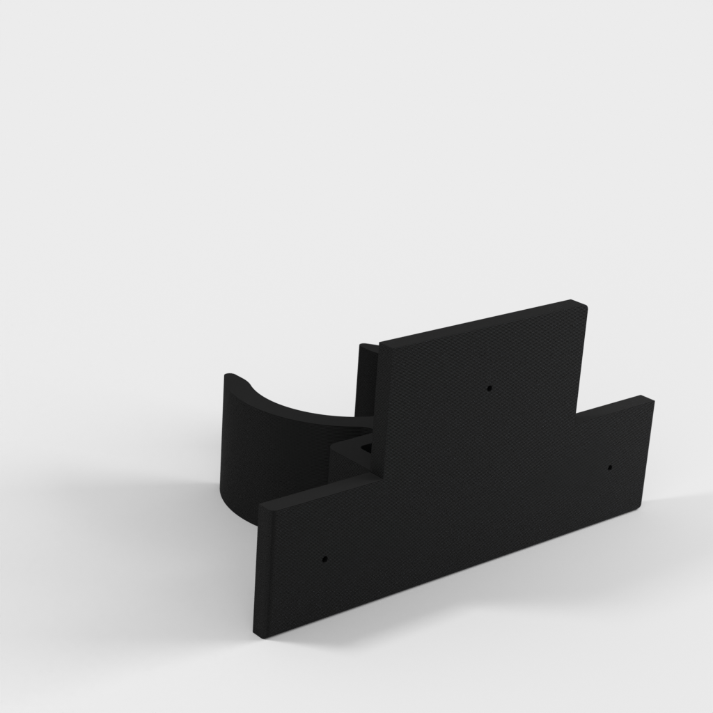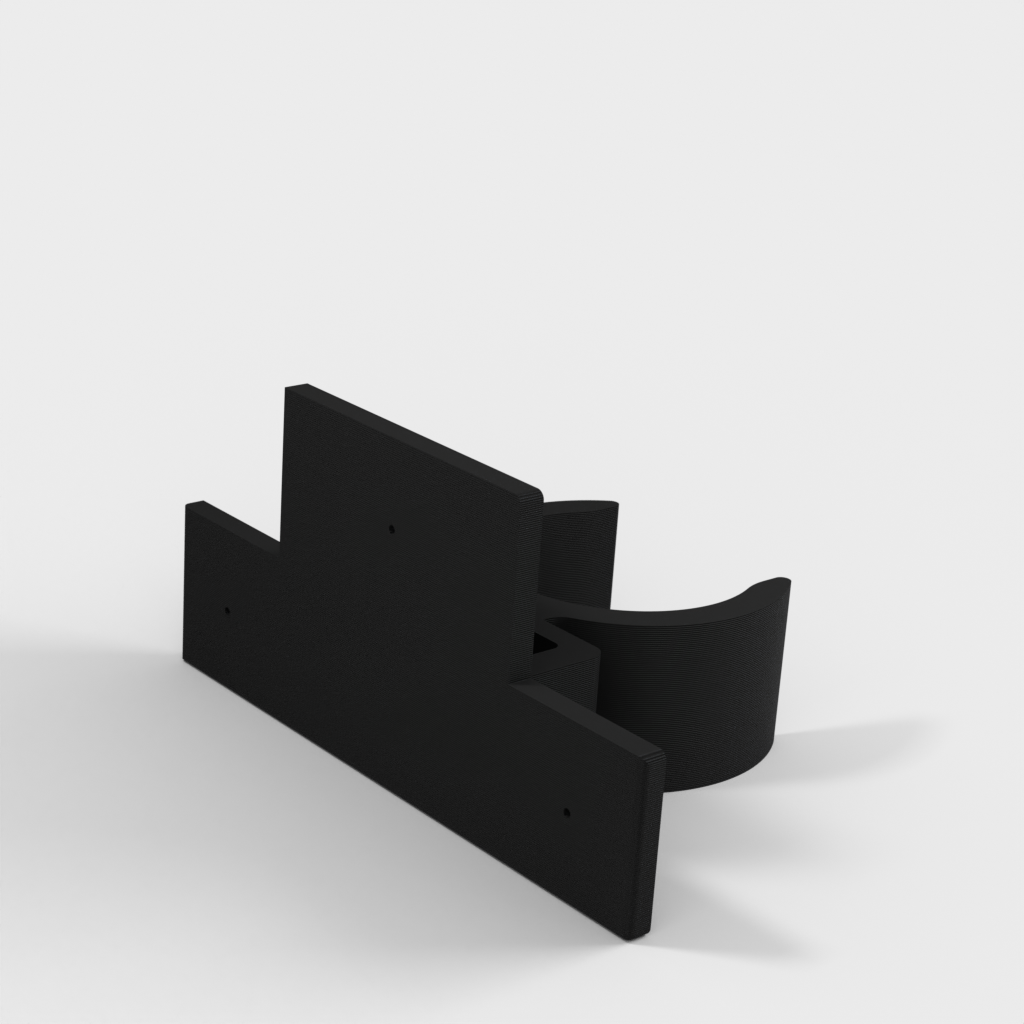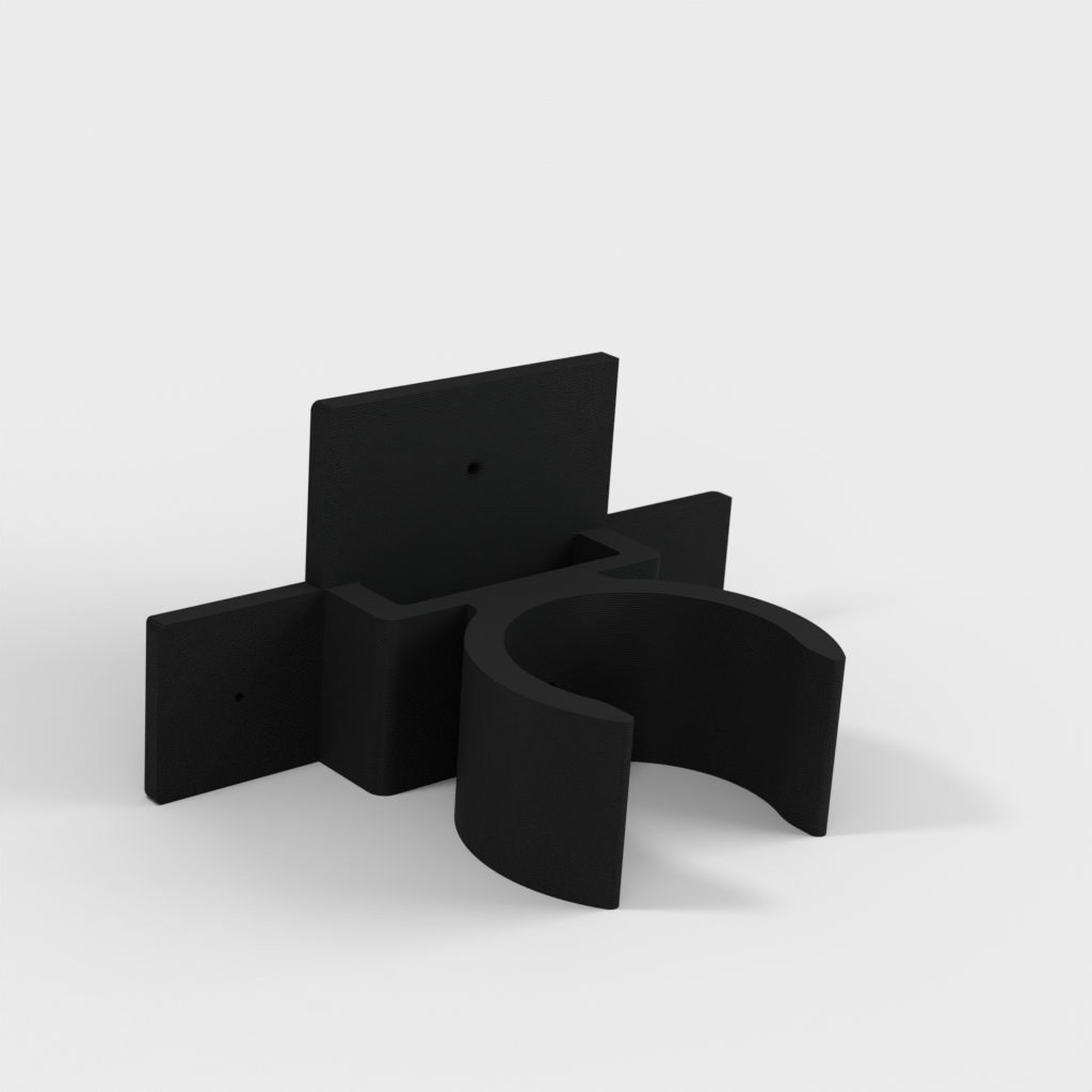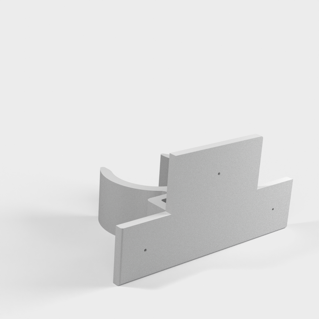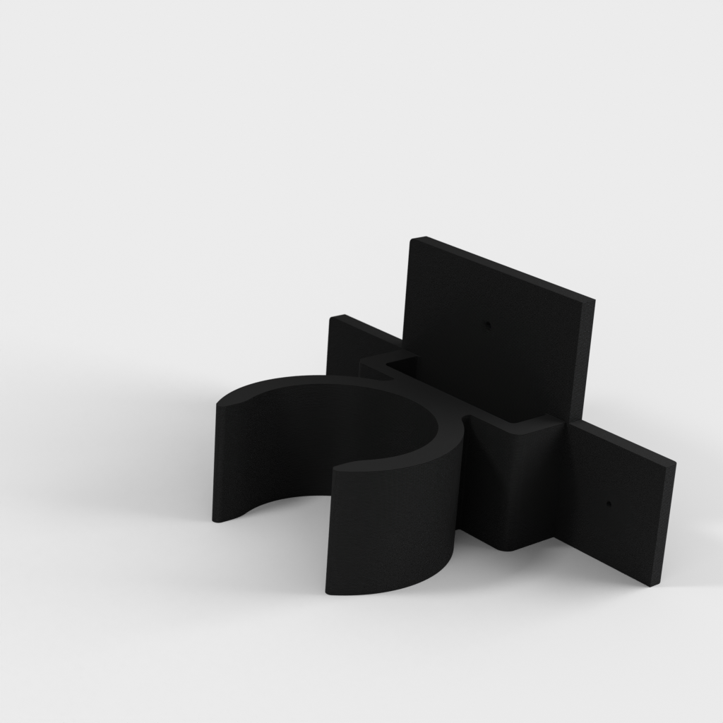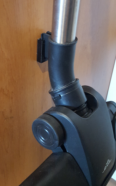 Hållare för ETA Stellar dammsugarrör. Den nedre delen stöder T-formade delar av röret och rekommenderas att fästas med skruvar, eftersom den bär större delen av vikten. Den övre delen är avsedd för rör med en diameter på 32 mm, men den kan även användas för delar med en diameter på 35 mm utan problem. Denna del kan fästas antingen med skruvar eller dubbelhäftande tejp.