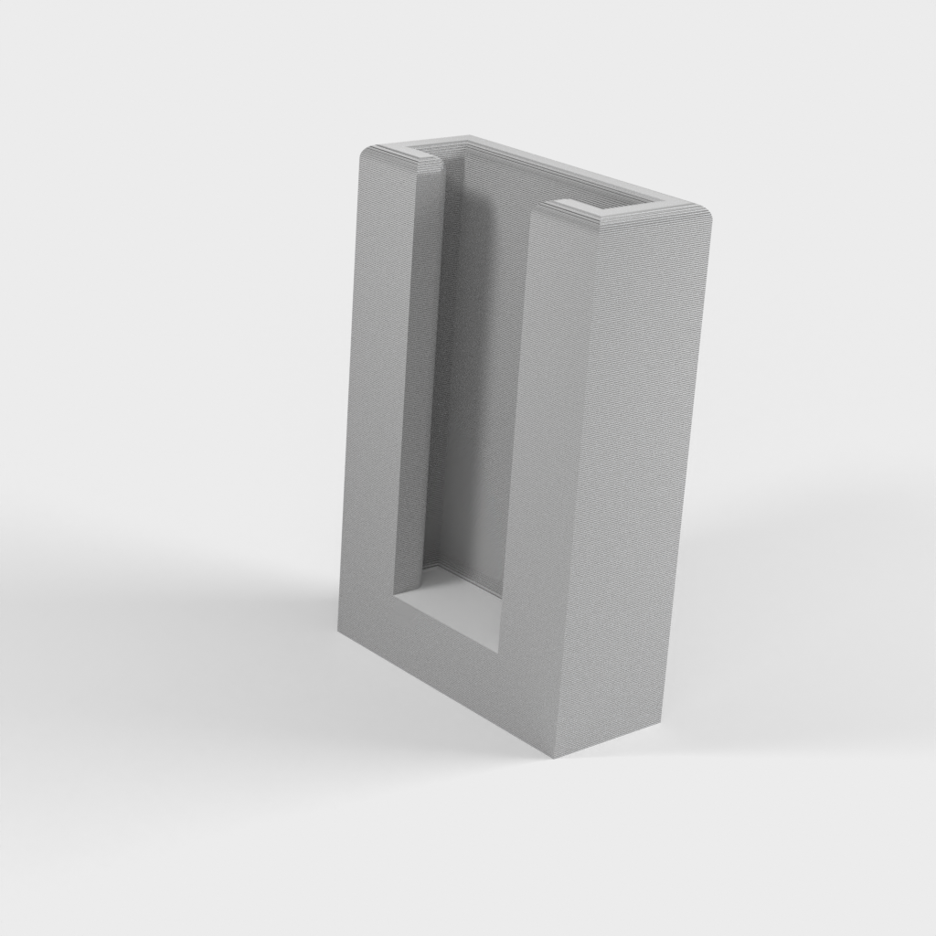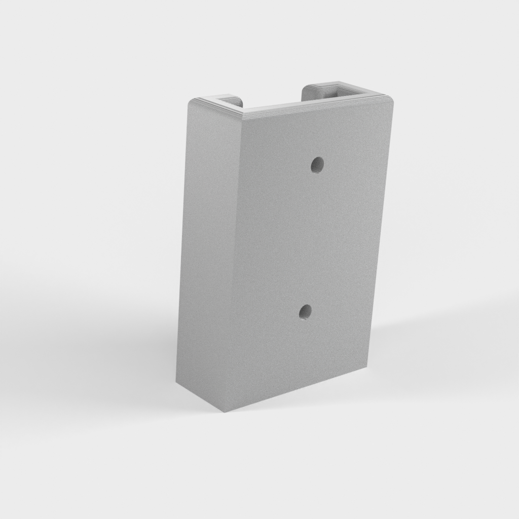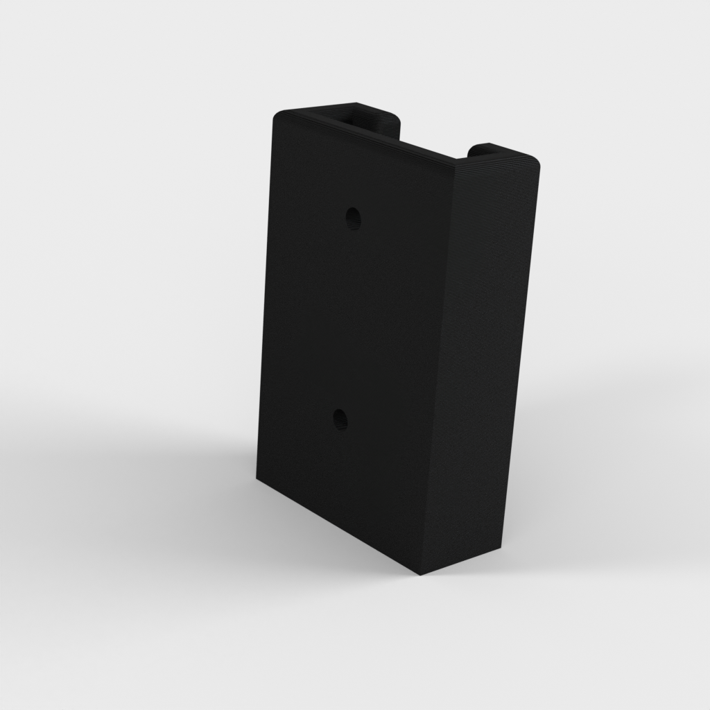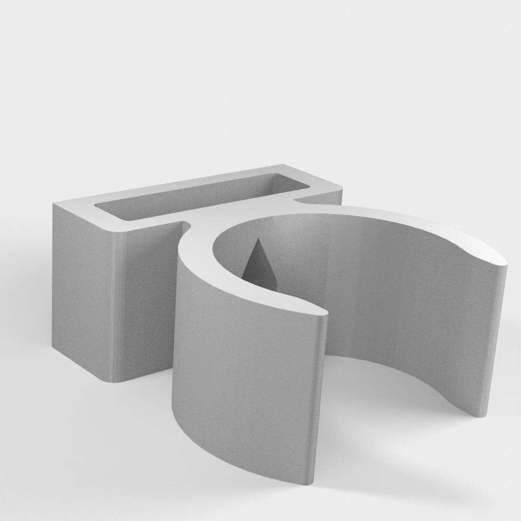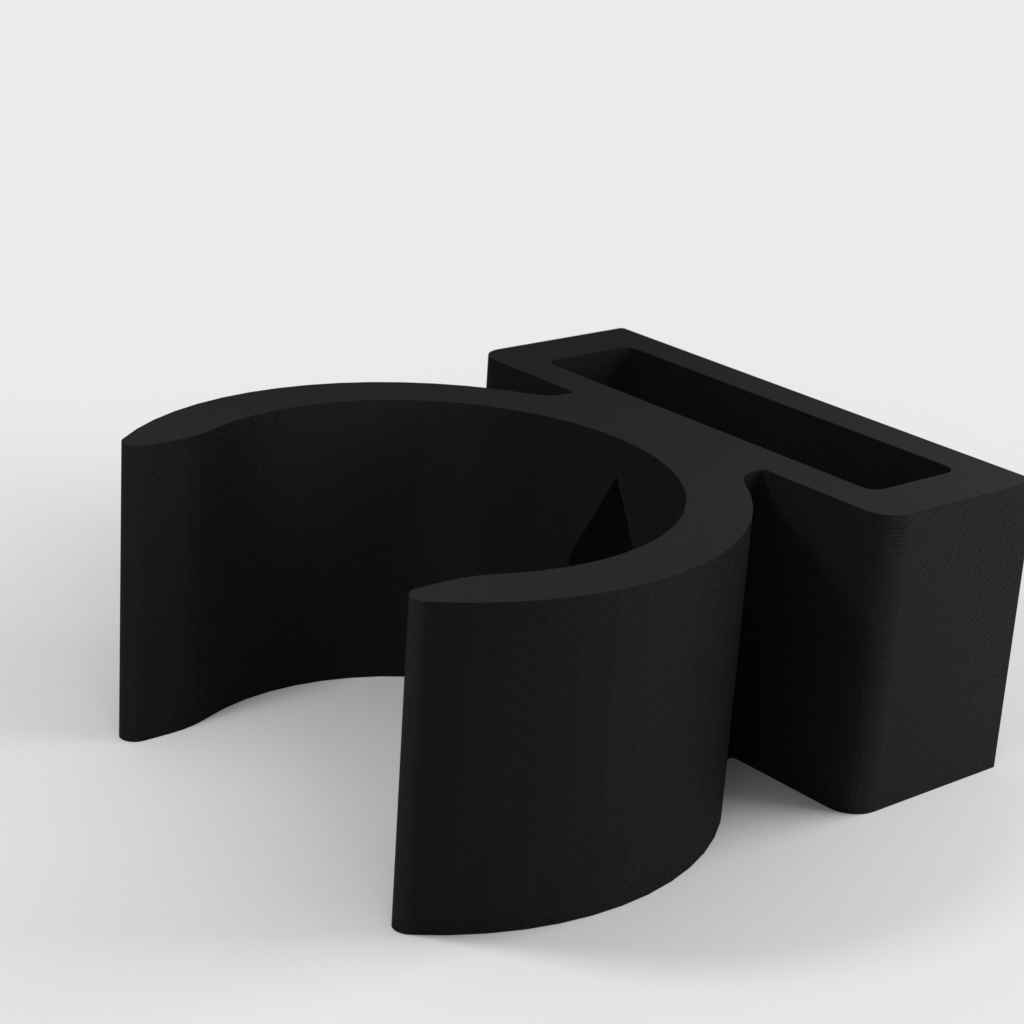 Hållare för ETA Stellar dammsugarrör. Den nedre delen stöder T-formade delar av röret och rekommenderas att fästas med skruvar, eftersom den bär större delen av vikten. Den övre delen är avsedd för rör med en diameter på 32 mm, men den kan även användas för delar med en diameter på 35 mm utan problem. Denna del kan fästas antingen med skruvar eller dubbelhäftande tejp.