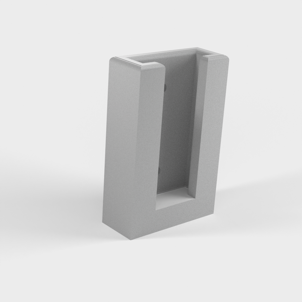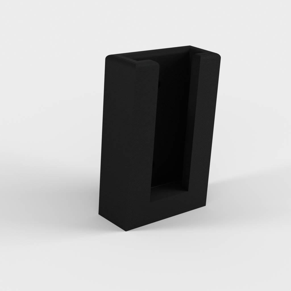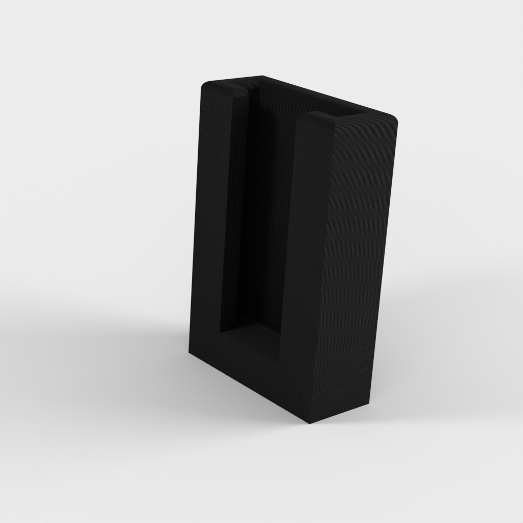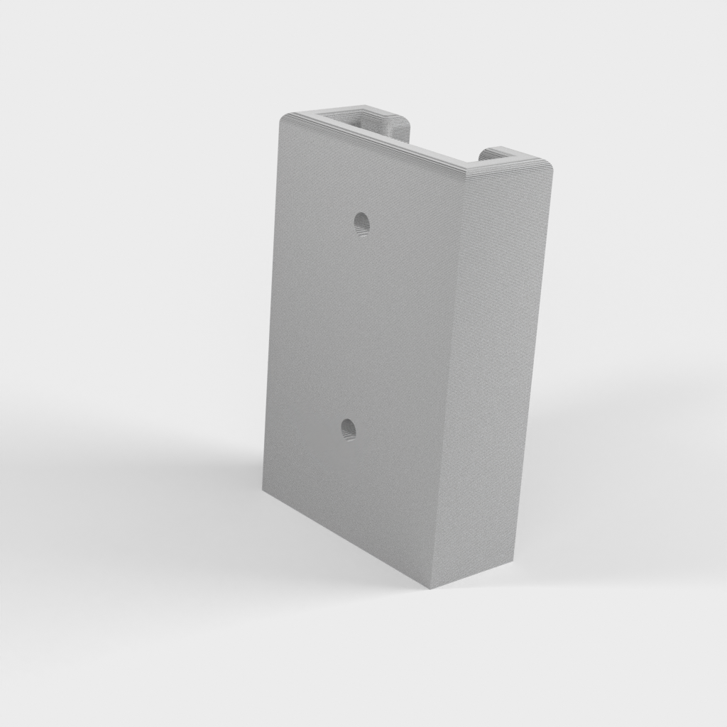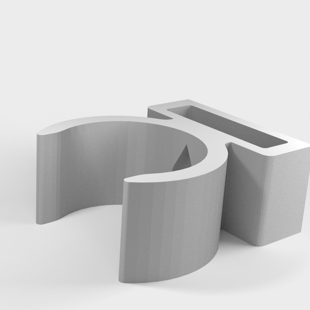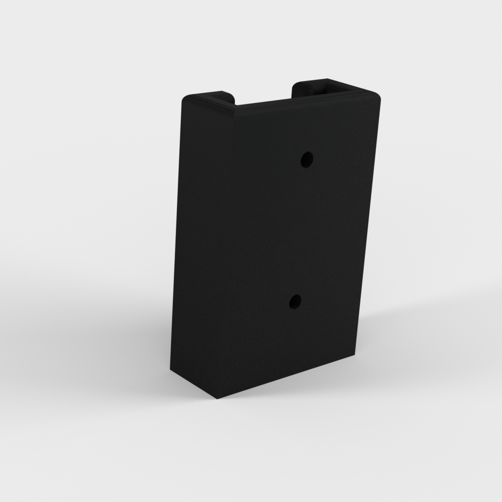 Hållare för ETA Stellar dammsugarrör. Den nedre delen stöder T-formade delar av röret och rekommenderas att fästas med skruvar, eftersom den bär större delen av vikten. Den övre delen är avsedd för rör med en diameter på 32 mm, men den kan även användas för delar med en diameter på 35 mm utan problem. Denna del kan fästas antingen med skruvar eller dubbelhäftande tejp.